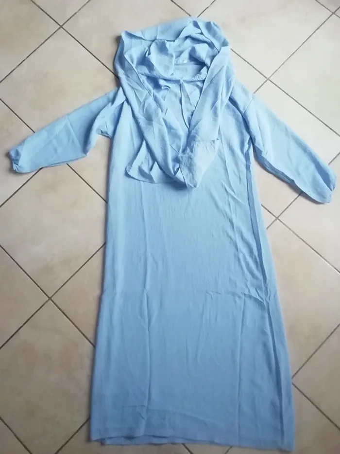 DE COULEUR BLEU CLAIR. IDEALE PRIRE CAR VOILE INTEGRE. ETAT NEUVE. TAILLE NOTEE : 12ans. (mensurations sur demande; dispo aussi dans la même taille en beige, voir annonces).
