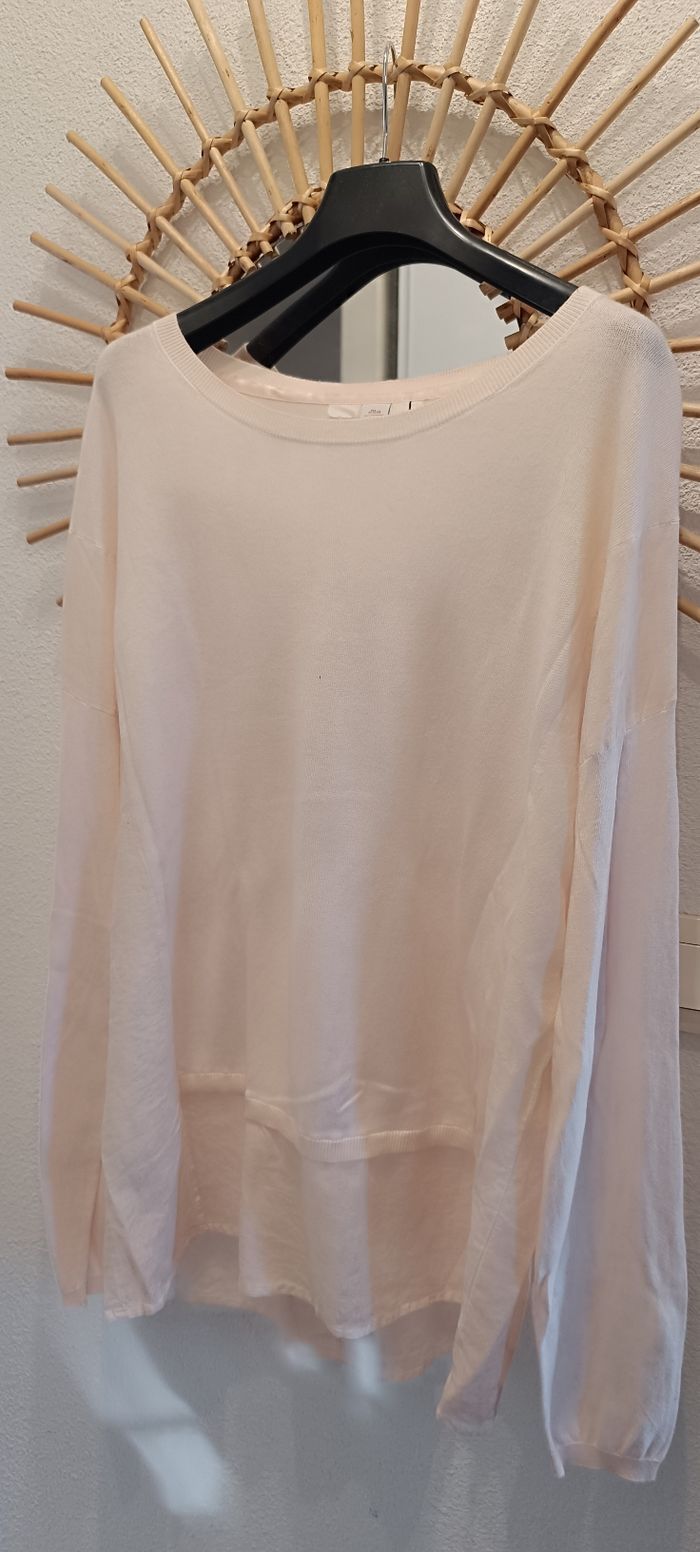 Blouse légère s.Oliver Taille 46 Peut étre porté par une taille plus petite façon oversize Maille légère et voilage de chaque côté du corps à l'avant et à l'arrière Rose pâle Fdp mini envoi soigné