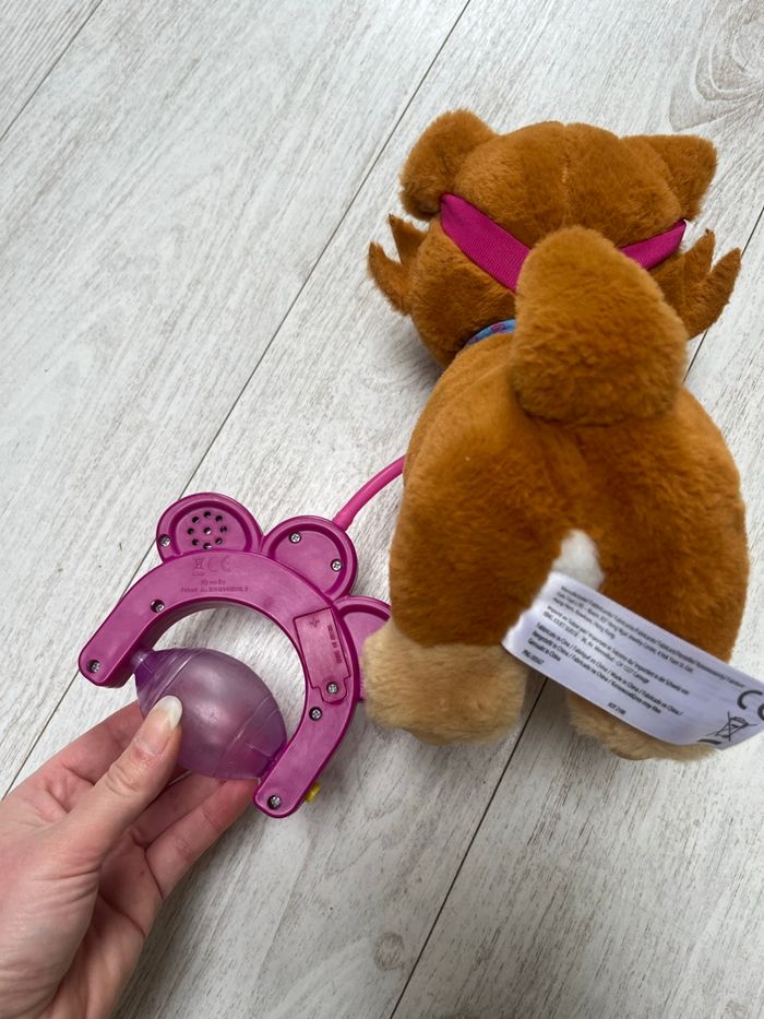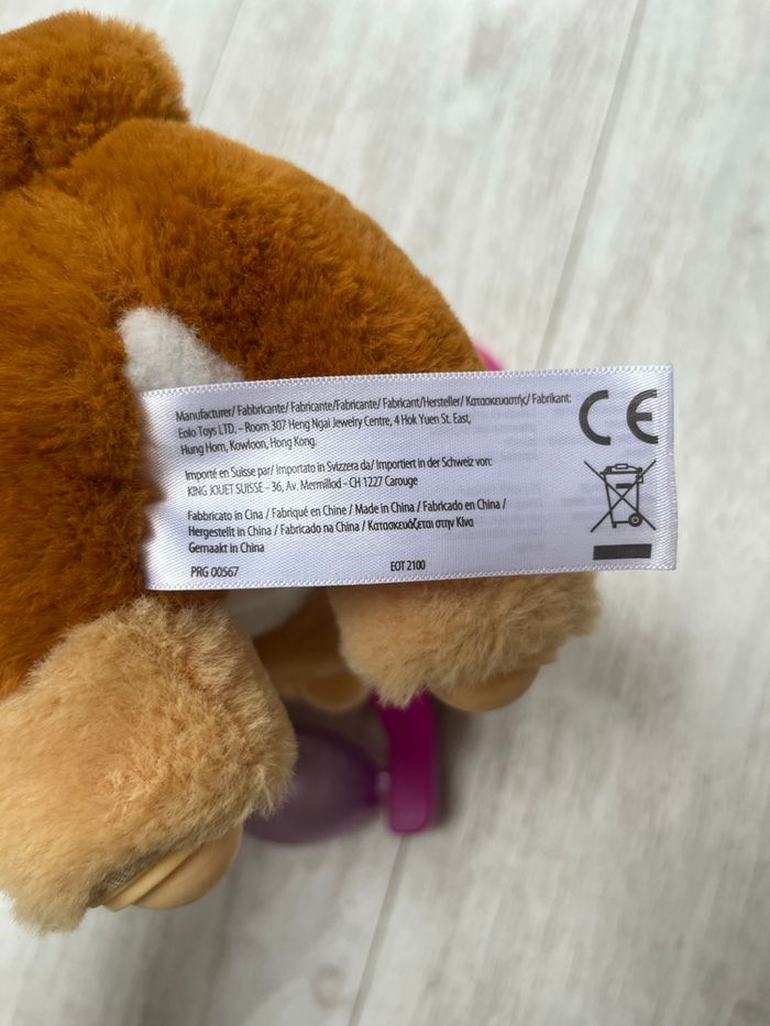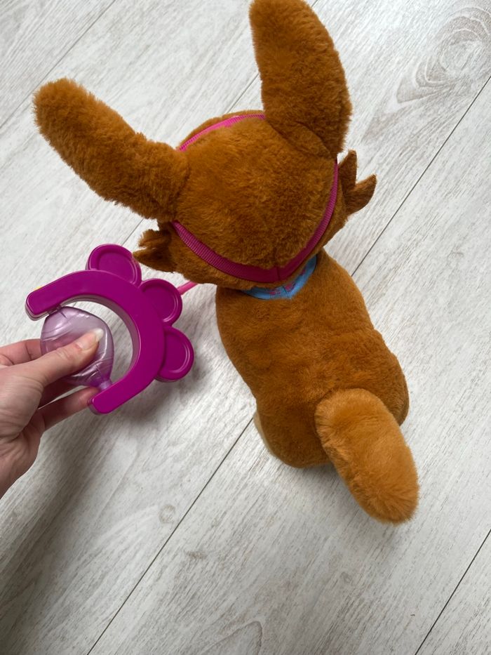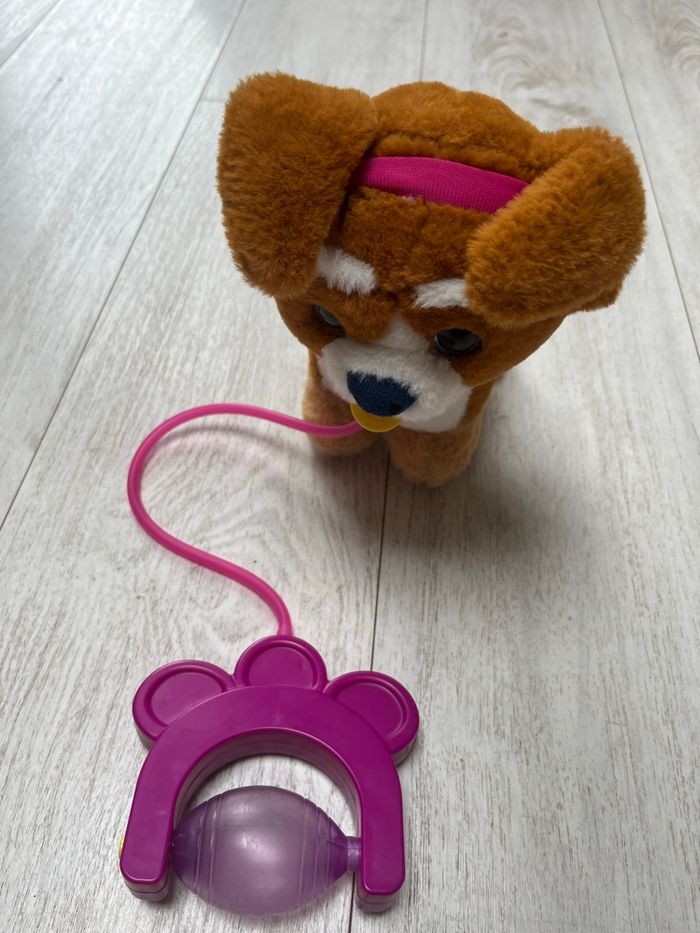 Chien interactif King jouet Il aboie avec le petit bouton jaune Les oreilles et la queue se dressent quand on appuie sur la laisse Sur roulettes 📦 envoi rapide et soigné