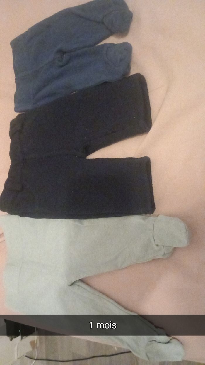 Pantalons taille 1 mois d'occasion en très bon état. 20e le tout possible de faire séparément n'hésitez pas de me contacter en mp .