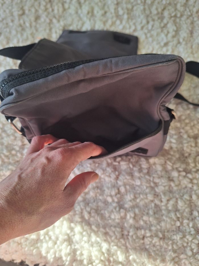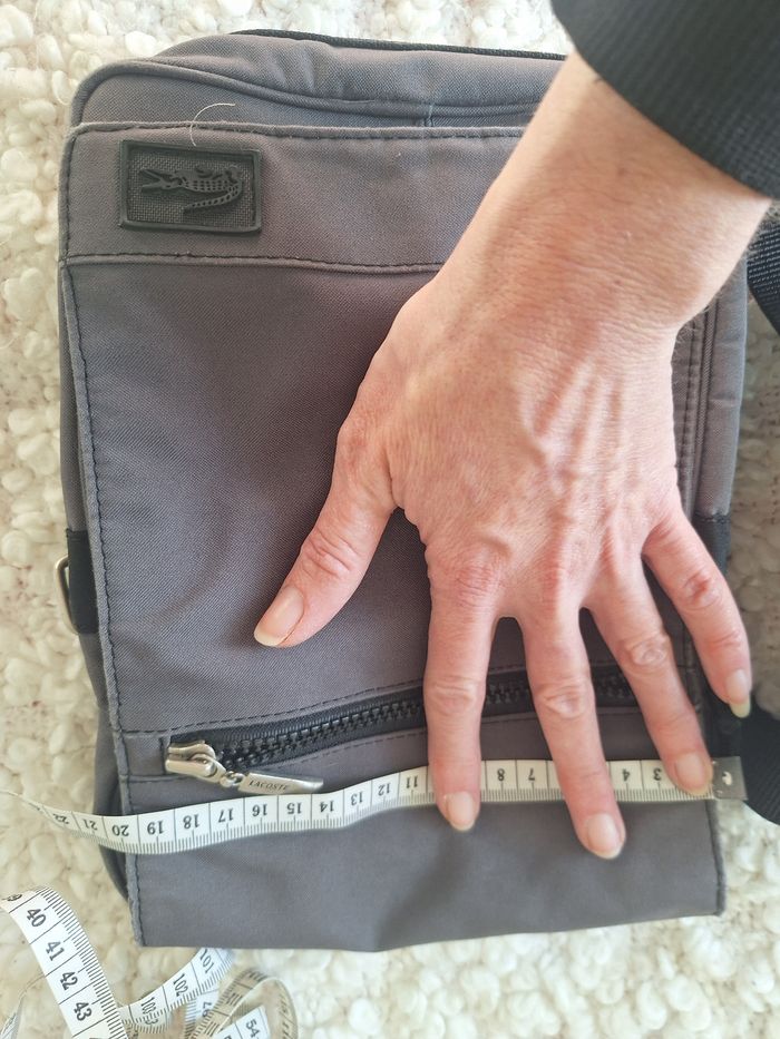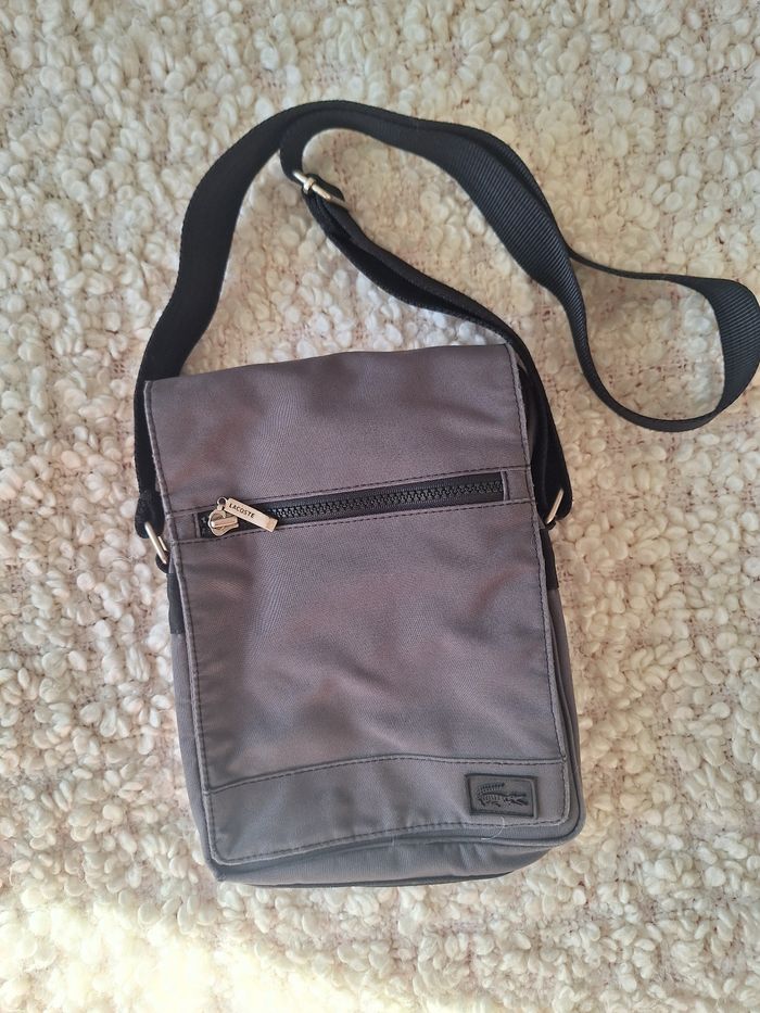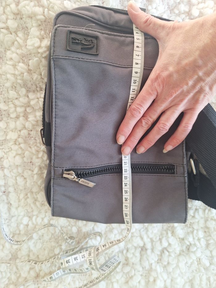 Sac Pochette lacoste grise, porté bandoulière. mesures sur les photos