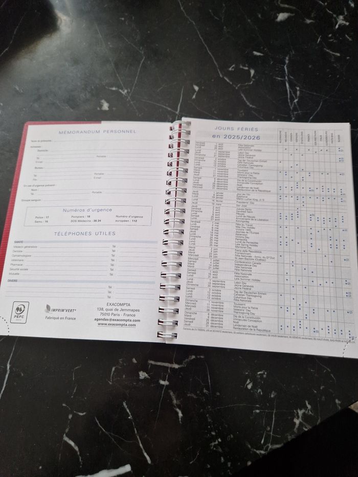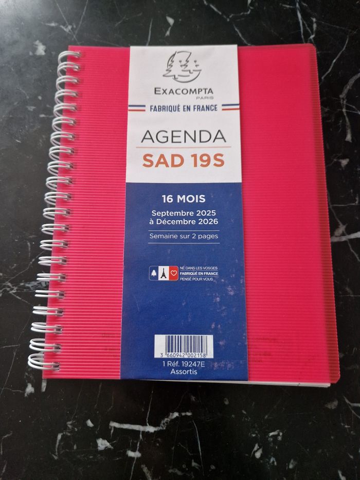 Bonjour, je vends cet agenda totalement neuf pas du tout utilisé, rose fuschia Exacompta. Format de 14×18 cm, toujours valable il va jusqu'en décembre 2026, semaine sur 2 pages. La couverture est en plastique rigide. Visible dans le 78 vers Marly-le-Roi. N'hésitez pas à faire un lot, réduction et frais de ports uniques !