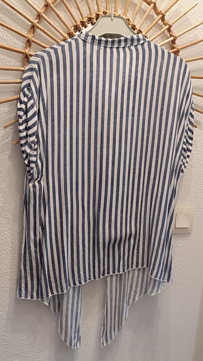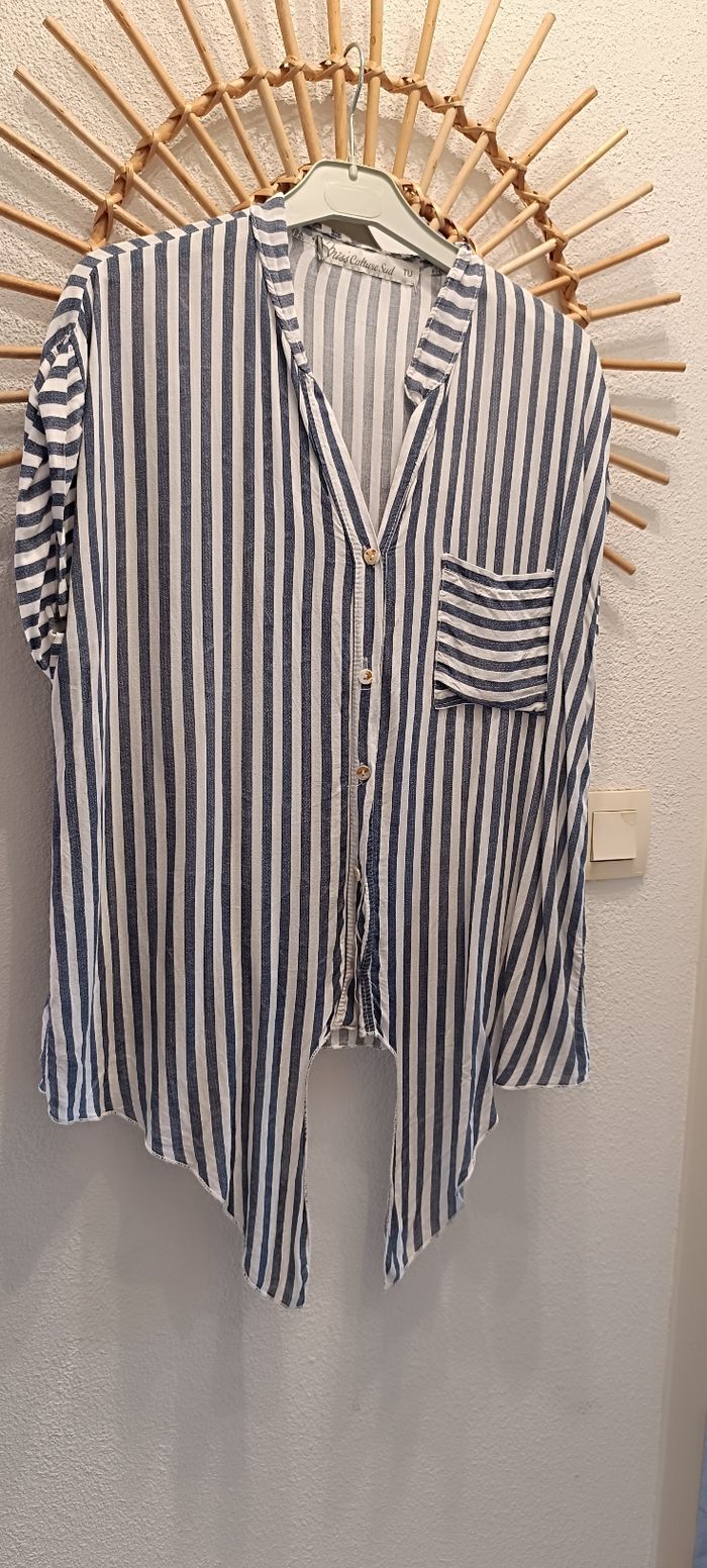 Chemisier léger culture sus Manches courtes Rayé bleu et blanc Belle finition revers aux épaules Nouable à la taille Fdp mini envoi soigné