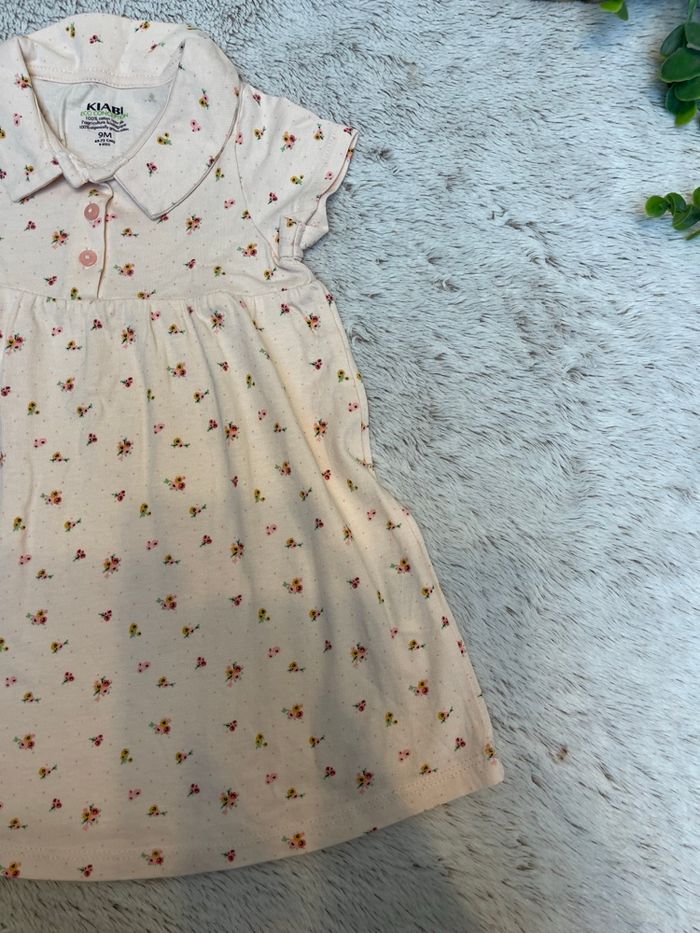 Robe d’été style polo à manche courte Rose pale imprimé fleuris Taille 9 mois Kiabi État neuf