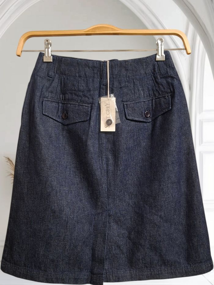 Jupe en jeans taille haute. Devant tirette et agrafe, 2 poches et e derrière. 1 bouton de réserve. Marque Soft Grey de la Redoute Taille 36 / Matière 100% Coton Largeur de taille à plat 32 cm Hauteur 55 cm pour 1,60 cm elle arrive juste au niveau des genoux Neuve avec étiquette 🏷