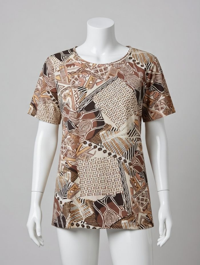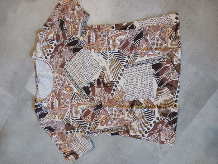 T shirt imprimé marron beige et blanc Taille 38-40 Damart Neuf Belle qualité - photo numéro 1