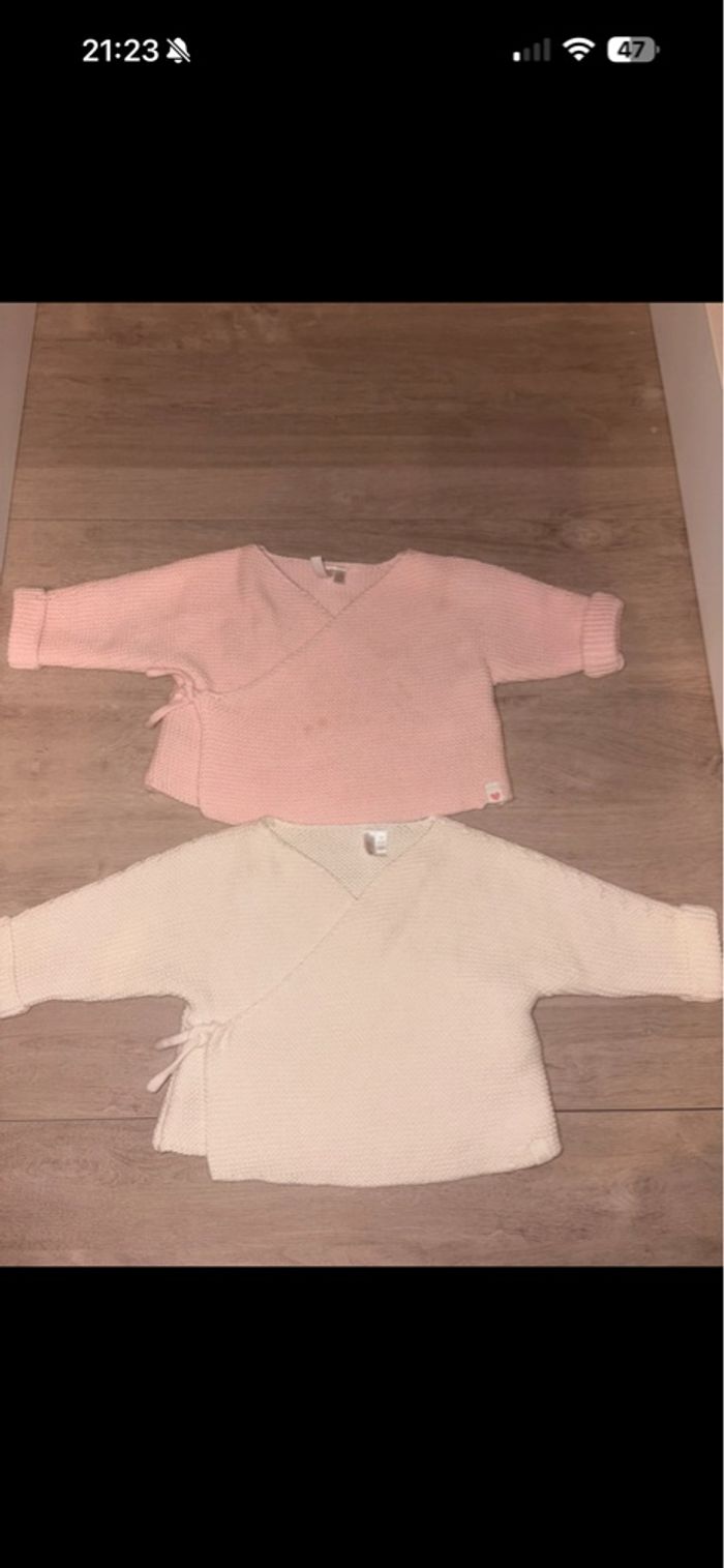 Je vends un gilet rose et blanc de la marque Orchestra, taille 1 mois. ⚠️ À noter : il y a quelques petites taches sur la partie rose (voir photos).