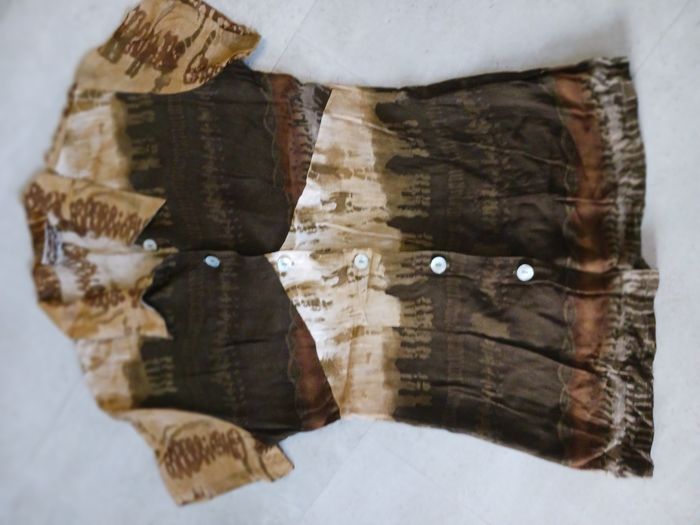 chemisier manches courtes imprimé marron et beige taille 1 Terracotta Neuf superbe 100 % viscose - photo numéro 1