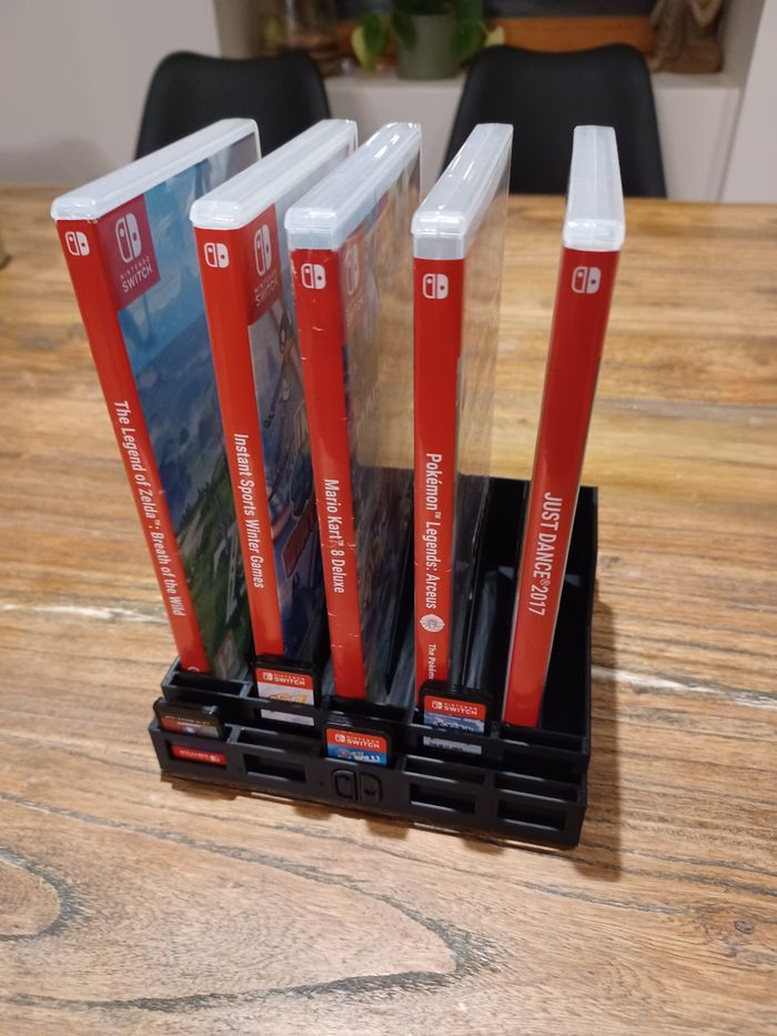 Optimisez votre setup gaming avec ce support compact conçu pour accueillir 10 cartouches de Nintendo Switch ! Idéal pour avoir vos jeux préférés sous la main sans devoir ouvrir chaque boîte à chaque fois. Capacité : 10 emplacements. Fabrication : Impression 3D haute qualité en PLA Noir (finition propre et sobre). Design : Minimaliste, se glisse facilement sous la TV ou sur un bureau. ⚠️ PRÉCISION IMPORTANTE : Le support est vendu SEUL. Les jeux présents sur les photos servent uniquement d'illustration et ne sont pas inclus dans la vente. Envoi très rapide et emballage protégé ! 📦 N'hésite pas à regarder ma vitrine, j'ai plusieurs accessoires gaming à la vente ! #NintendoSwitch #Switch #Gaming #Setup #AccessoireSwitch #RangementJeux #Impression3D