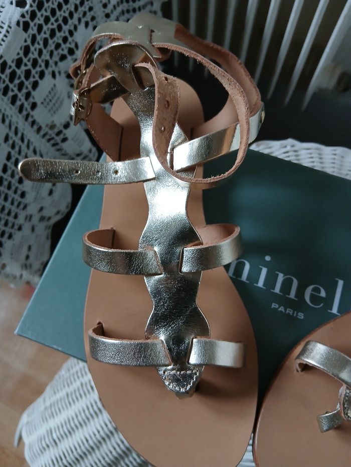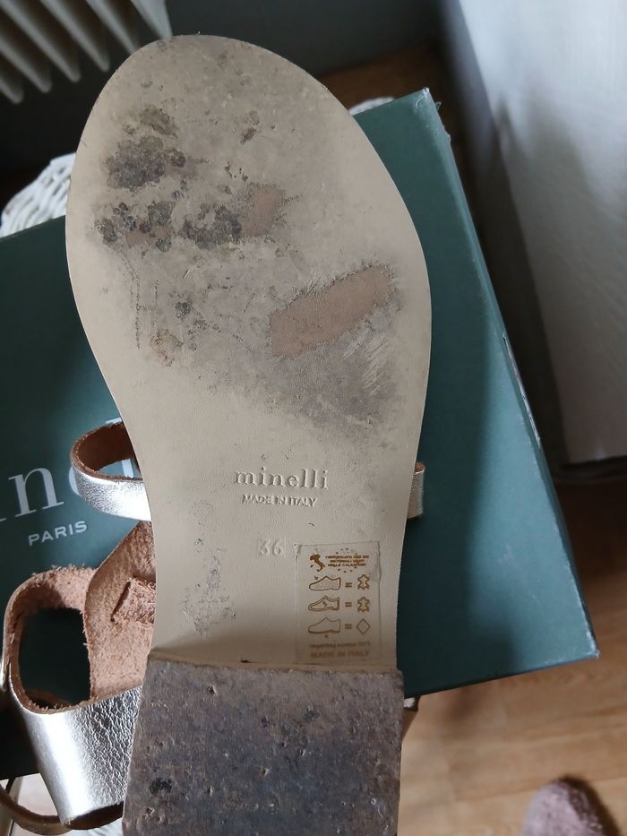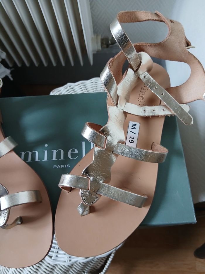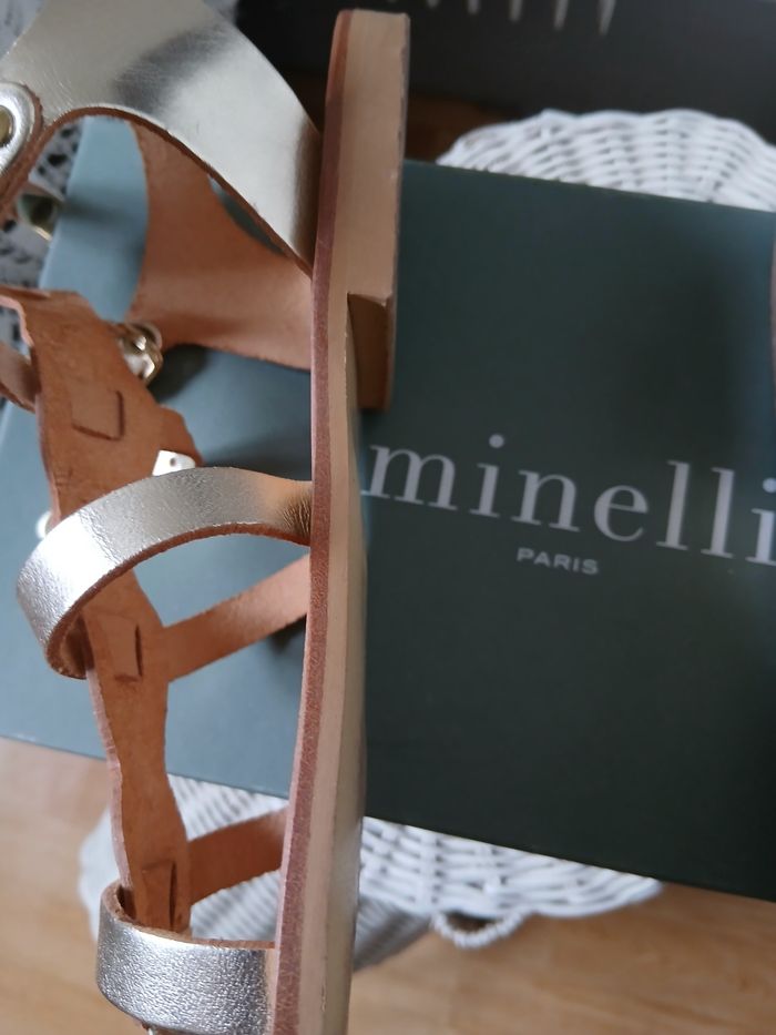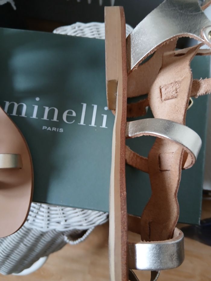 Nus pieds minelli, en cuir doré, taille 36 porté 1 fois d'où les semelles tachées mais excellent état