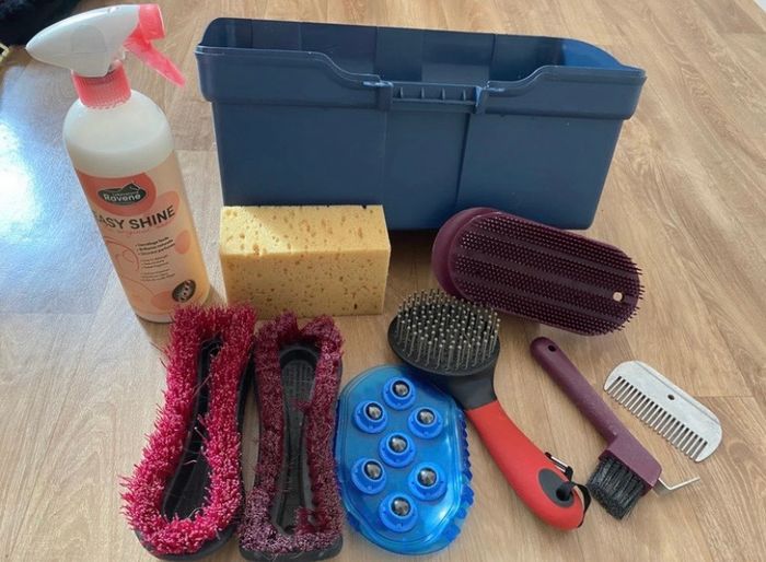 Neuf, servis 1 fois. Le lot 70€. - tapis cheval - Licol et longe - Boite de rangement avec garniture ( voir photo ) très bon état.
