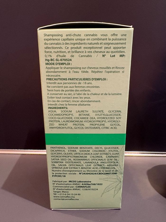 Shampoing anti chute CANNAFLEX produit naturel fabriqué au Maroc