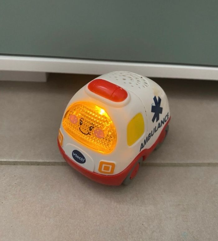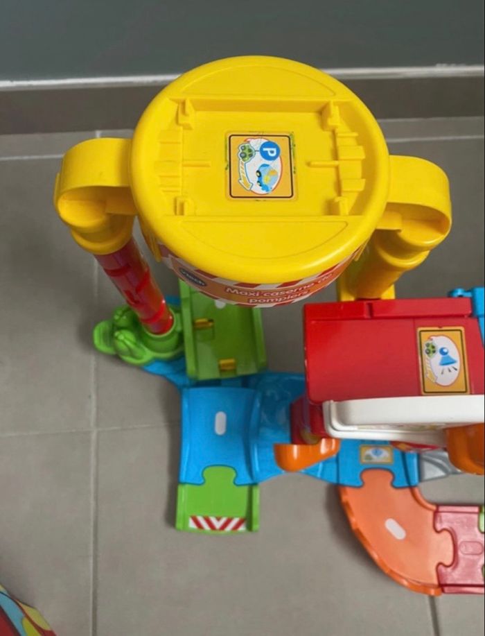 Très bon état général : - manque des pièces secondaire ( voir photo 2 ) mais ne gêne en rien l’utilisation. 2 camions de pompier et 2 ambulances inclus.