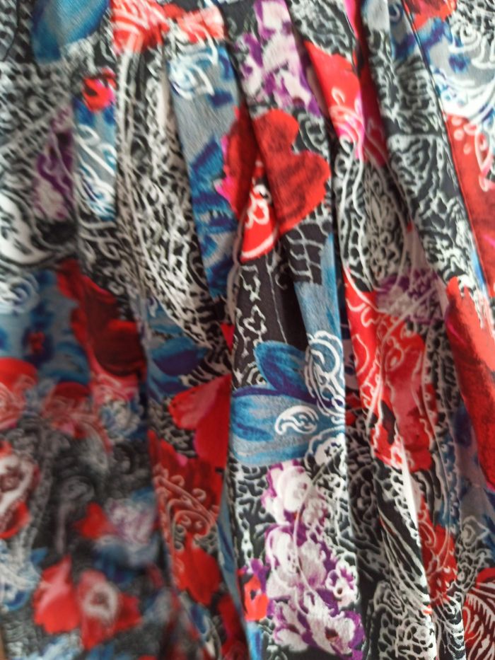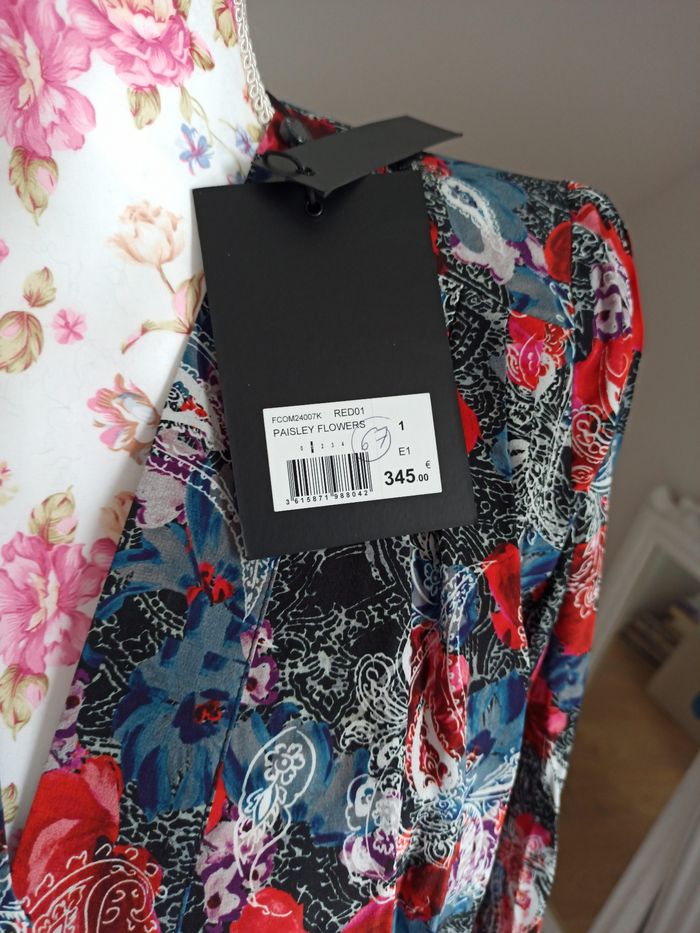 Neuve avec étiquette combinaison soie The Kooples taille 36 Achetée 345 euros Magnifiques motifs de coquelicots sur fond noir avec des nuances de bleu orage, violet,blanc la soie donne un aspect très lumineux aux coloris. Très agréable à porter, facile à enfiler Ceinture élastique et fermeture zip sur le côté Très flatteuse, Elle allonge la silhouette Dimensions Hauteur totale 144 cm Haut épaules/ taille élastique : 40,5, cm Ceinture élastique/ bas de pantalon ; 103,5 cm Bas pantalon :16,5 cm