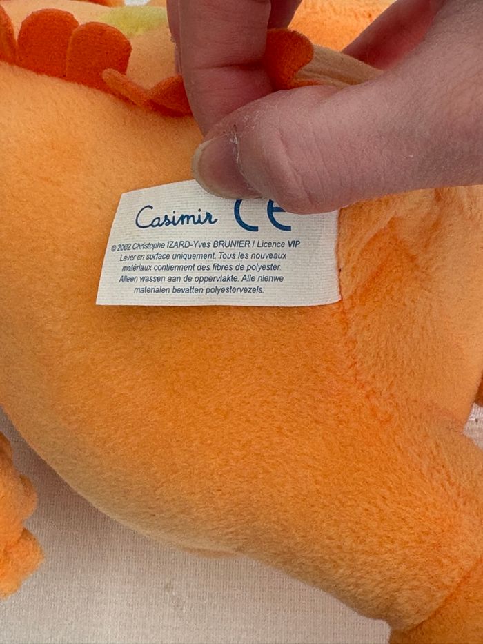 🧸Types d’article : Peluche Casimir ®️ Marque : Tomy 🧡Couleur : Orange 🏷️Matière : Contient des fibres de polyester 📏Dimensions : Hauteur 25cm 🔍État : Très bon état 📋Description Détaillée : Retrouvez le mythique Casimir, personnage emblématique et attachant, dans sa version peluche orange par Tomy 🧡✨ 🦕 Couleur orange vive iconique 🌈 Détails colorés sur le ventre et le dos 🧸 Matière douce et agréable au toucher ❤️‍🩹Défauts : Aucun 🧼 Conseil d’entretien : Laver en surface uniquement