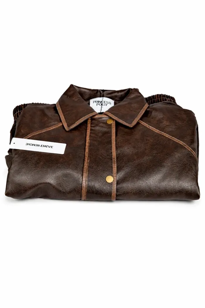 Blouson simili cuir vintage marron S/M neuf avec étiquette – bomber oversize style rétro M / 38 / 10 - photo numéro 1