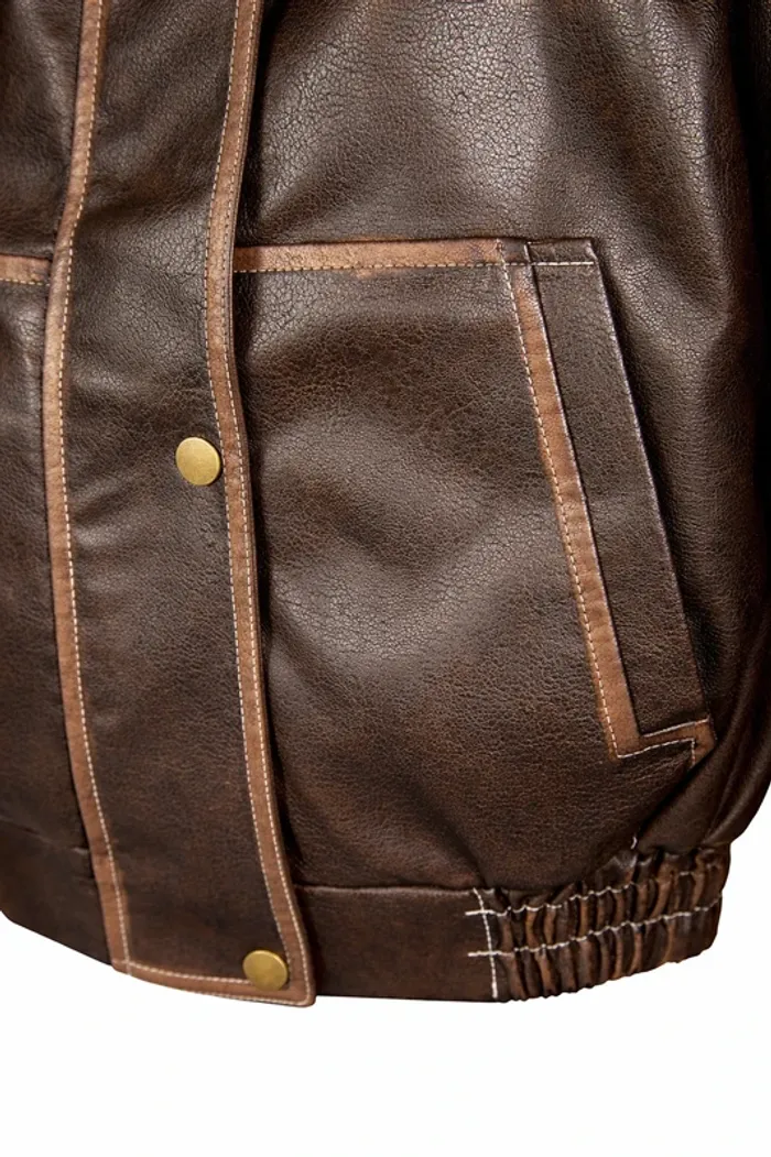 Blouson simili cuir vintage marron S/M neuf avec étiquette – bomber oversize style rétro M / 38 / 10 - photo numéro 4