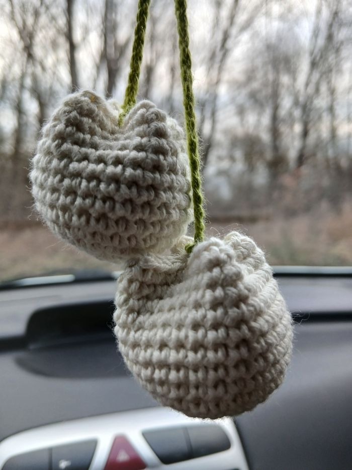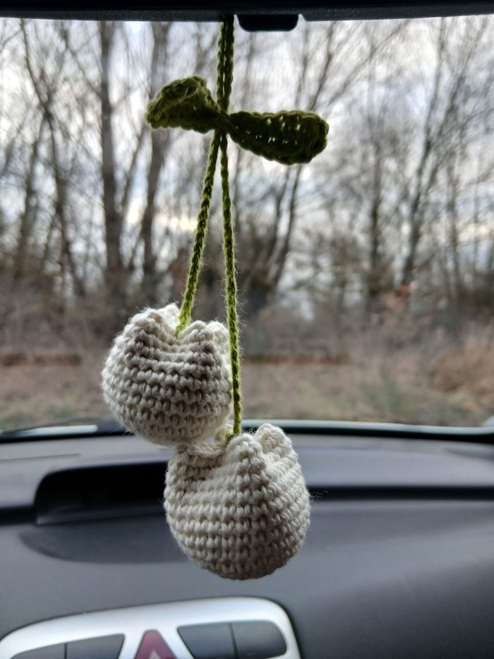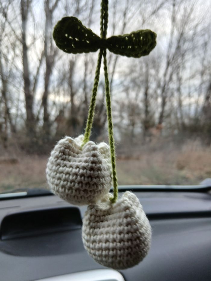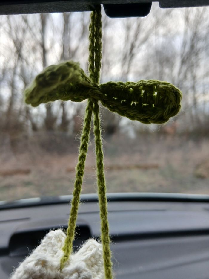 Décoration rétroviseur tulipe blanche fait main au crochet en 100% coton