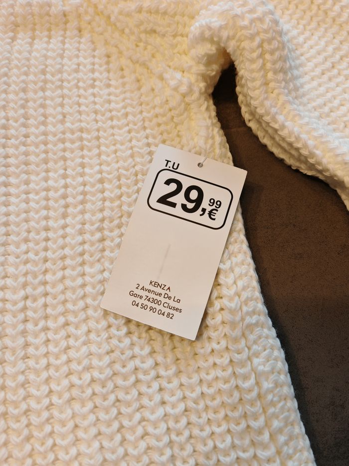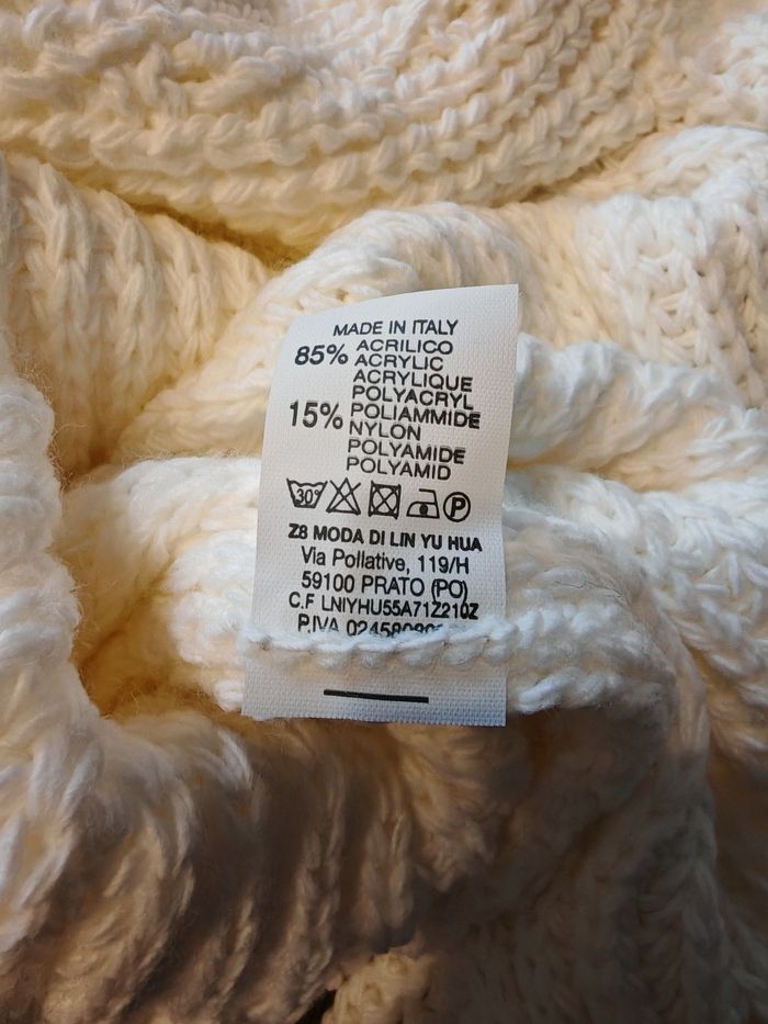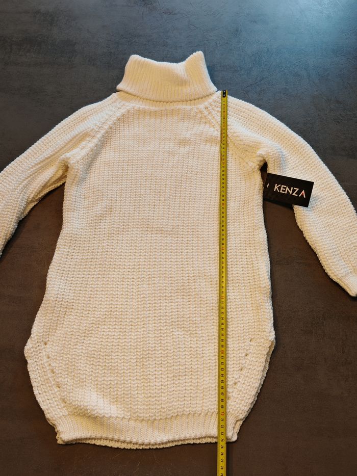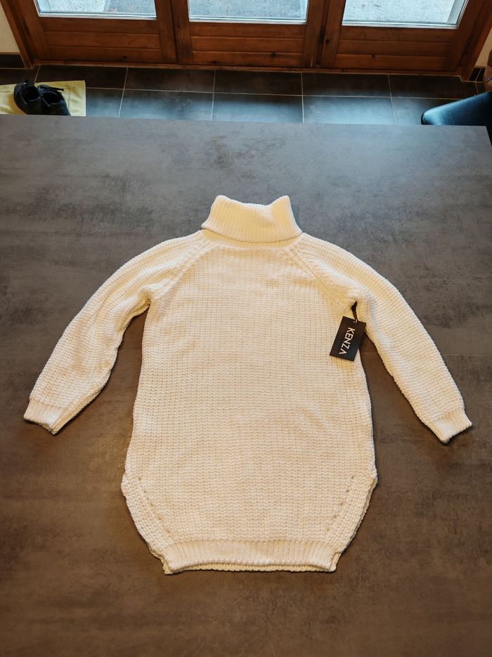 Robe-pull blanc cassé NEUVE – Made in Italy – Taille Unique ​ Magnifique robe-pull à col roulé, neuve avec son étiquette d'origine (Prix boutique : 29,99 €). 🌟 Sa couleur blanc cassé / vanille clair est très lumineuse et la maille est douce et confortable. ​✨ État : Neuf avec étiquette. ​🇮🇹 Origine : Made in Italy (Belle qualité). ​📏 Taille : Taille unique.(convient du 36 au 40 environ grâce à sa maille extensible). ​📐 Mesures : ​Longueur : 74 cm. ​Aisselle à aisselle : 44 cm. ​🌿 Matière : 85% Acrylique, 15% Polyamide (étiquette de composition en photo). ​📦 Envoi : emballage soigné. ​🚚 Transporteurs : Tous acceptés #robepull #neufavecetiquette #tailleunique #modafeminina #hiver #chic