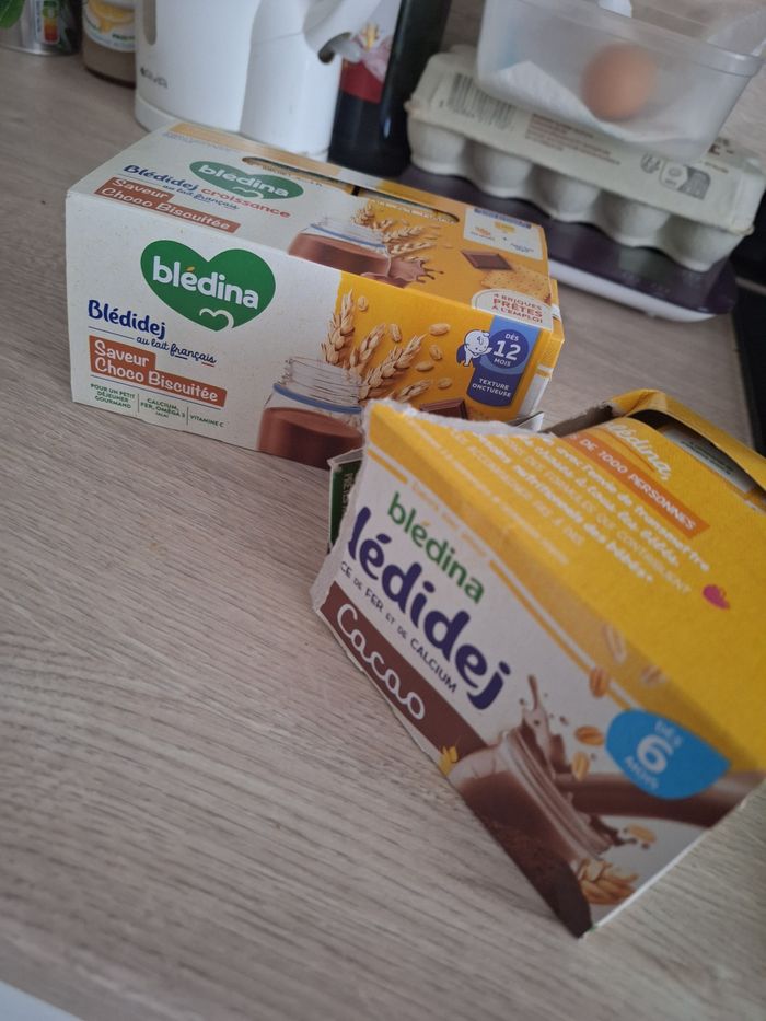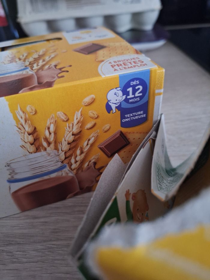 2 briques au cacao 6 mois 4 briques au chocolat biscuit 12 mois