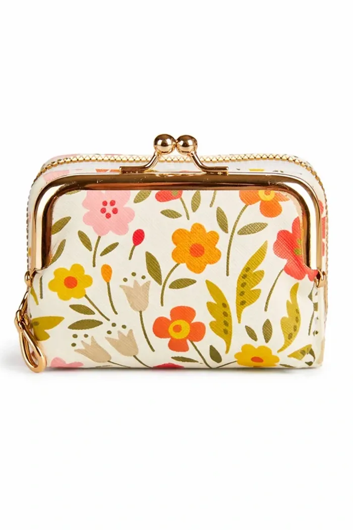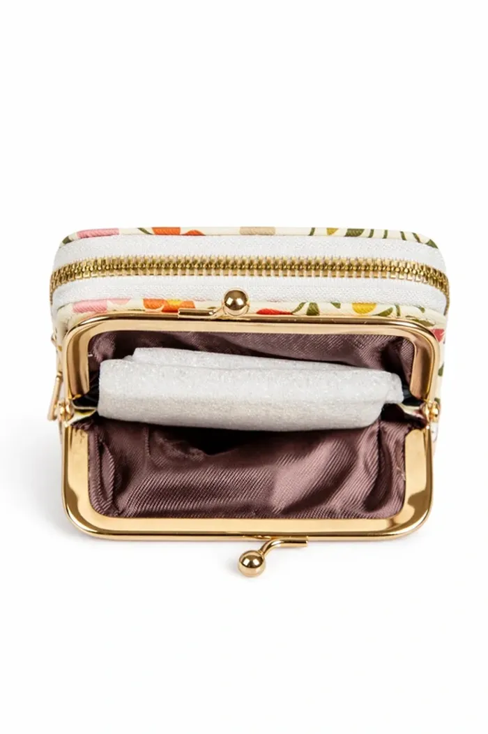 Portefeuille / Mini sac fleuri vintage – Fermoir doré – Double compartiment – Neuf Neuf sans étiquet