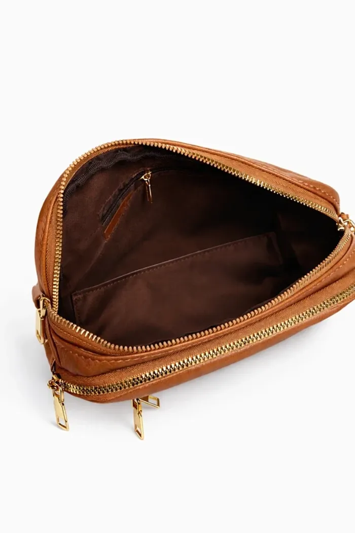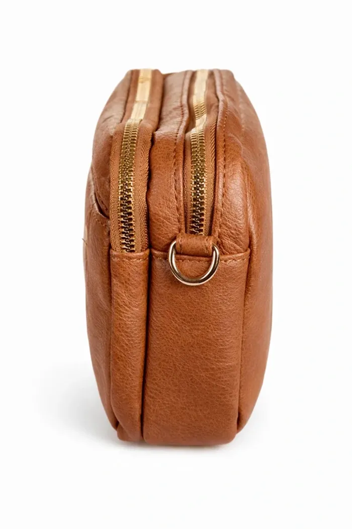 Sac bandoulière marron camel simili cuir double compartiment – neuf Neuf sans étiquette