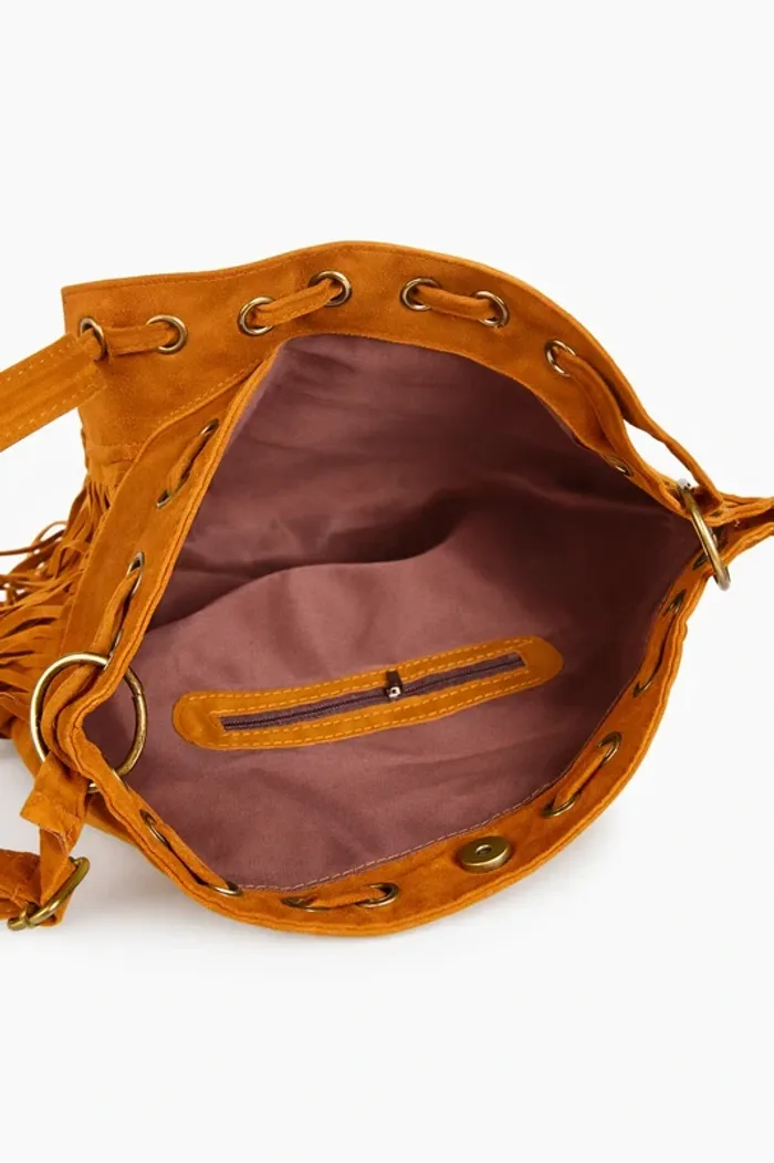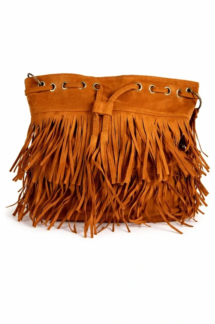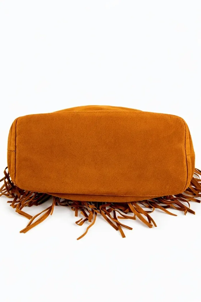 sac à main camel à franges style daim bohème boho chic épaule bandoulière Neuf sans étiquette