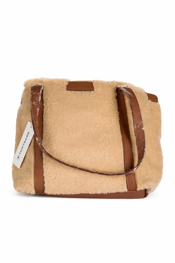 Sac cabas Tom Tailor au style moderne et tendance, parfait pour le quotidien, le travail ou les sorties. Matière douce effet fausse fourrure/teddy avec finitions simili cuir marron, très chic et confortable à porter. Grand format pratique, pouvant contenir facilement portefeuille, téléphone, trousse, agenda ou tablette. ✔ Anses solides ✔ Intérieur spacieux ✔ Style automne / hiver très recherché ✔ Article authentique, étiquette d’origine présente 📐 Dimensions (approximatives) Largeur : 38–40 cm Hauteur : 28–30 cm Profondeur : 12–14 cm 👉 Format grand cabas