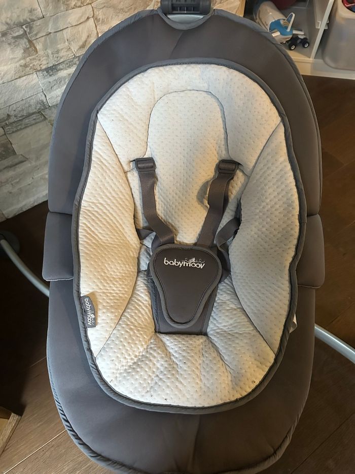 Transat babymoov swoon up Transat réglable en hauteur. Le dossier et l’assise sont réglable également de la position assise à allongé. Il est utilisable dès la naissance jusqu’à 9 kg. Très bon état. Encore vendu entre 115 et 180€ neufs selon les sites.