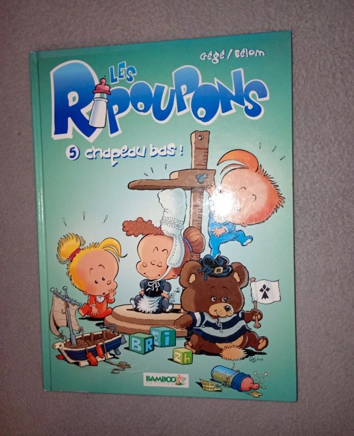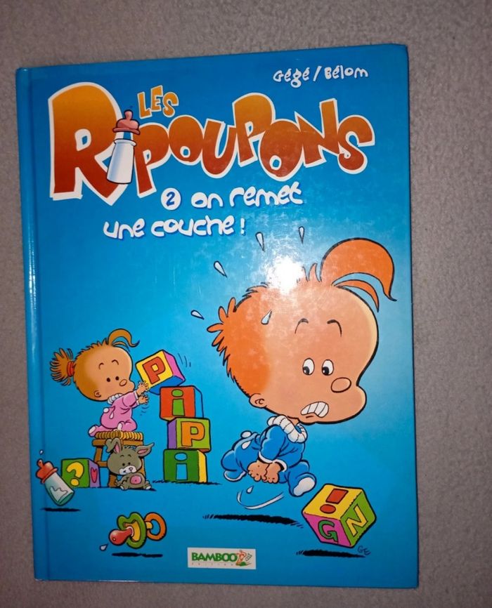 Lot de 2 BD tomes 2 et 5 pour enfants "les ripoupons". Elles sont en très bon état. J'ai mis bonne état car les coins ne sont plus aussi parfait que lors d'un achat car entreposées dans la bibliothèque