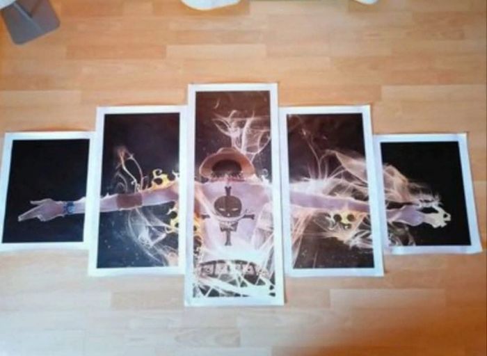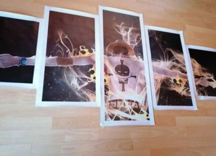 NEUF! Tableau de Ace dans ONE PIECE. Tableau en 5 parties, a assembler sois même, vendu sans les montants en bois, juste les toiles. Dimension : +- 80cm de hauteur sur 1m50 de large