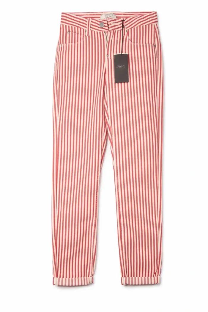 Marque : School Rag Coupe : Slim / ajustée Motif : Rayures rouges & blanches Couleur : Rouge / blanc État : Neuf avec étiquette ✅ Style : Casual chic / estival / original Jean très original et tendance, motif rayé idéal pour la belle saison. Coupe flatteuse, denim confortable, finitions de qualité. Parfait pour un look estival, city ou casual chic. 📐 Taille Taille US : 24 Correspondance française : 34 (XS) ✅ 📦 Envoi rapide et soigné 💬 Disponible pour toute question