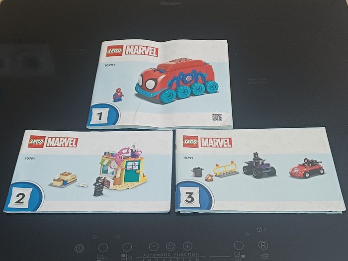 Set LEGO Marvel (référence 10791) inspiré du dessin animé "Spidey et ses amis extraordinaires". ​Le set comprend l'énorme camion QG articulé, la petite boutique de Sandman (ou épicerie), ainsi que les véhicules et figurines iconiques. ​État du set : ​Figurines incluses : Spidey, Ghost-Spider (Gwen Stacy), Miles Morales, Black Panther et Rhino. ​Notice : Les 3 livrets d'instructions originaux sont fournis. ​Vendu sans la boîte. ​⚠️ À noter (pièces manquantes) : Le set est presque complet, il manque uniquement 4 petits accessoires de décoration qui n'empêchent en rien la construction ni le jeu : ​La petite fleur dans le bac jaune. ​Le petit œuf individuel (à côté de l'œuf sur le plat). ​La brique "boîte de lait" derrière la vitrine. ​Le petit sac plastique qui va normalement dans la poubelle. ​Le reste est en excellent état, propre et prêt pour une nouvelle mission !