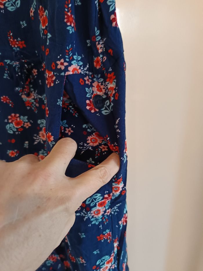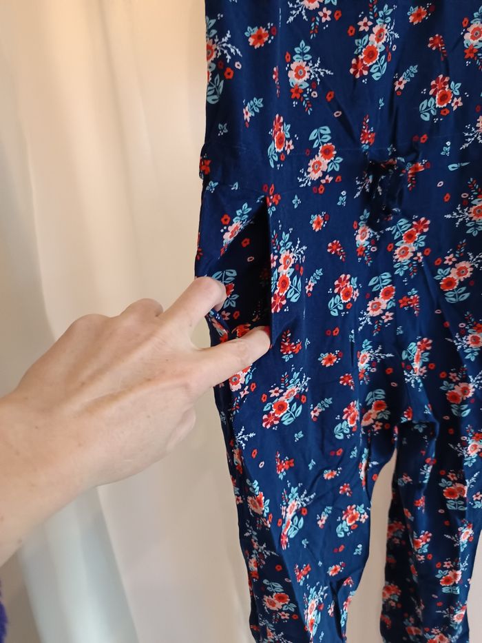 Combinaison longue taille 10ans bleu marine avec motifs fleurs en très bon état Bretelles réglables poches extérieures