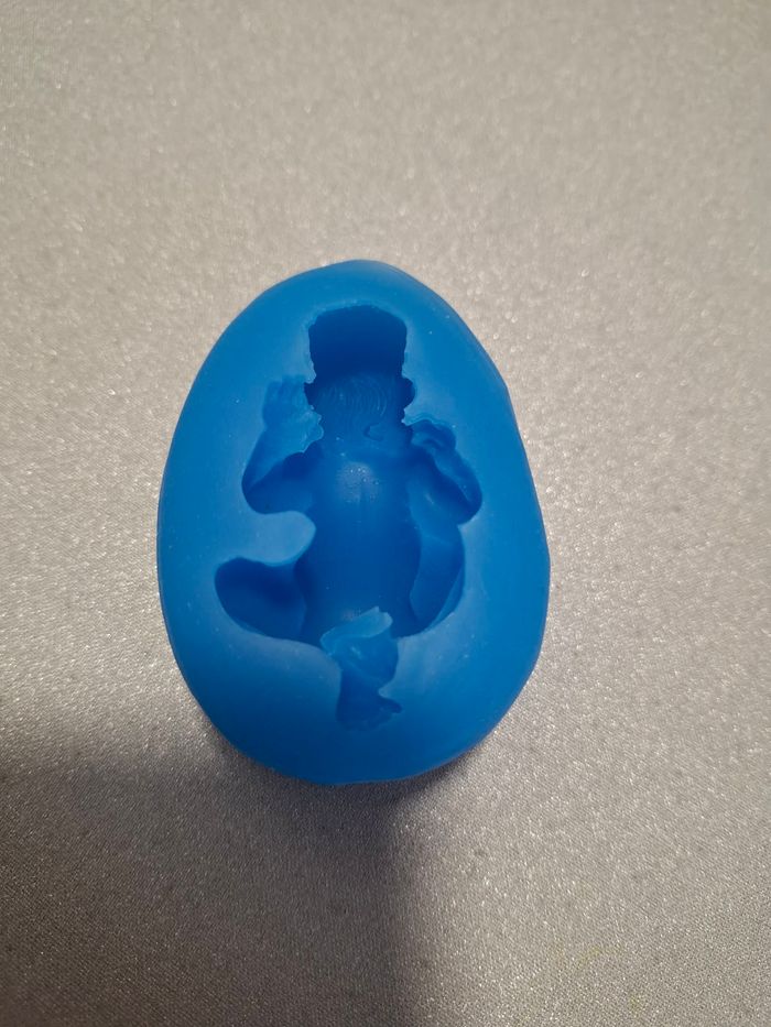 Joli moule en silicone pour créer un bébé en pâte fimo, pâte à sel, argile, pâte à sucre, pâte d'amande, etc ... Utilisé 2 x mais toujours en très bon état. Nombreux détails réalistes. Dimensions du moule 7,5 x 5 x 3 cm et dimensions d'un bébé 6,2 x 4 x 2,5 cm.