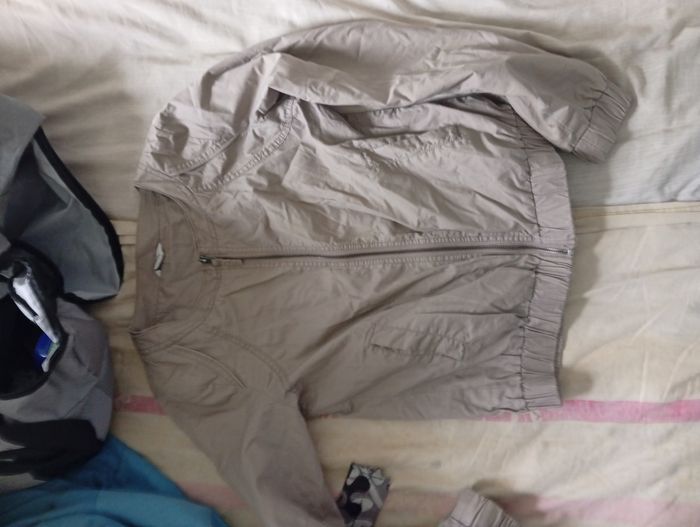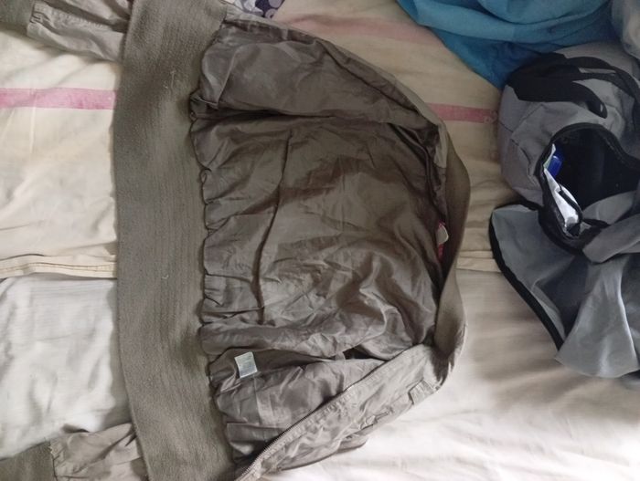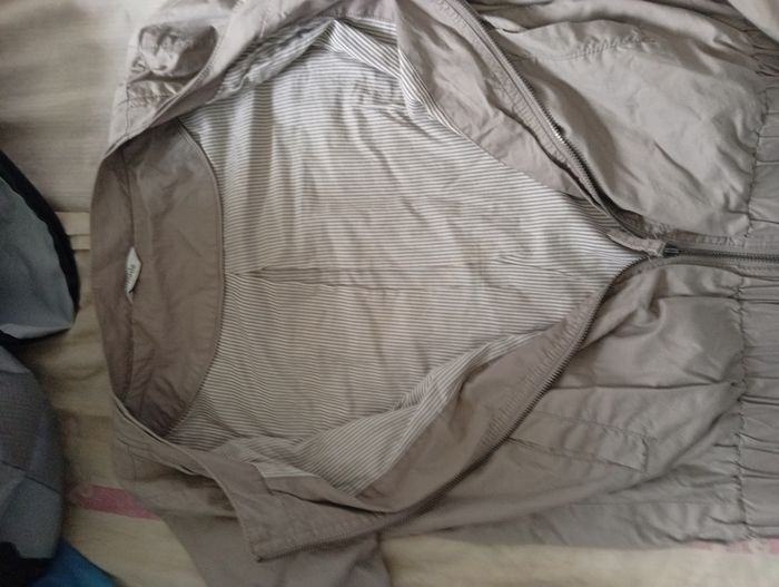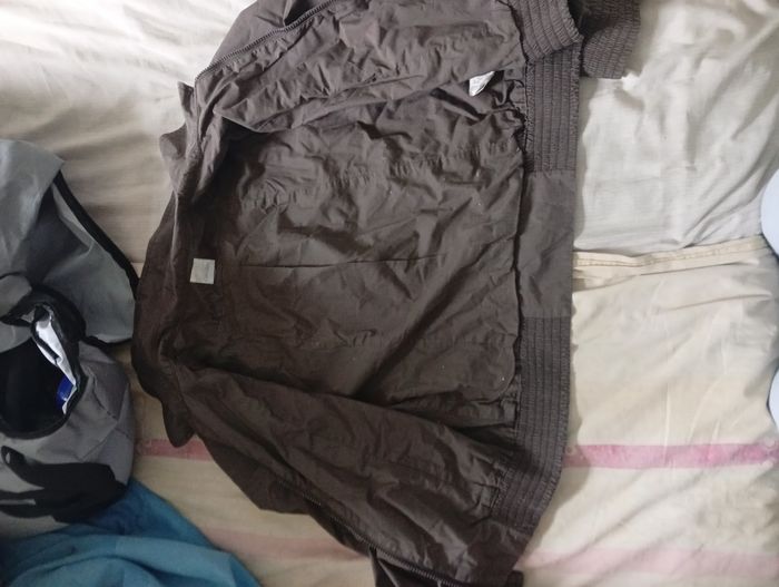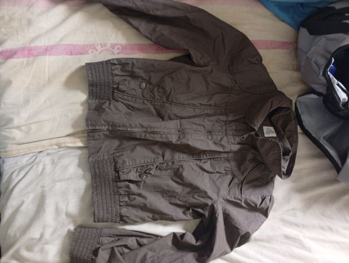 3 petite veste légère idéal printemps été Et un blouson fourré Le premier couleur marron taille 44 Le deuxième na pas de taille juste marqué 168 Le troisième taille M Et le blouson fourré a l'intérieur taille s