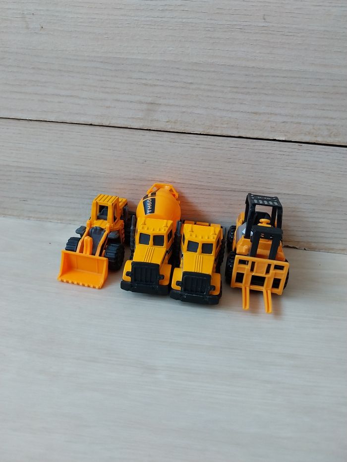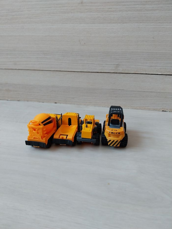 Lot de 4 engins de chantier dont 1 qui manque la remorque