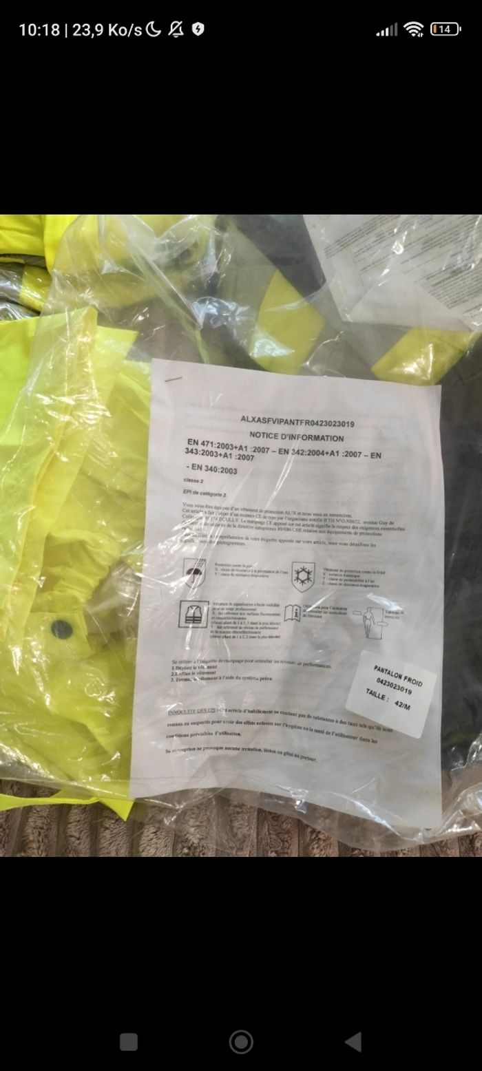 Pantalon Molletonné de travail neuf , vêtement professionnel de Haute qualité et visibilité.Taille L.Fluorescent.
