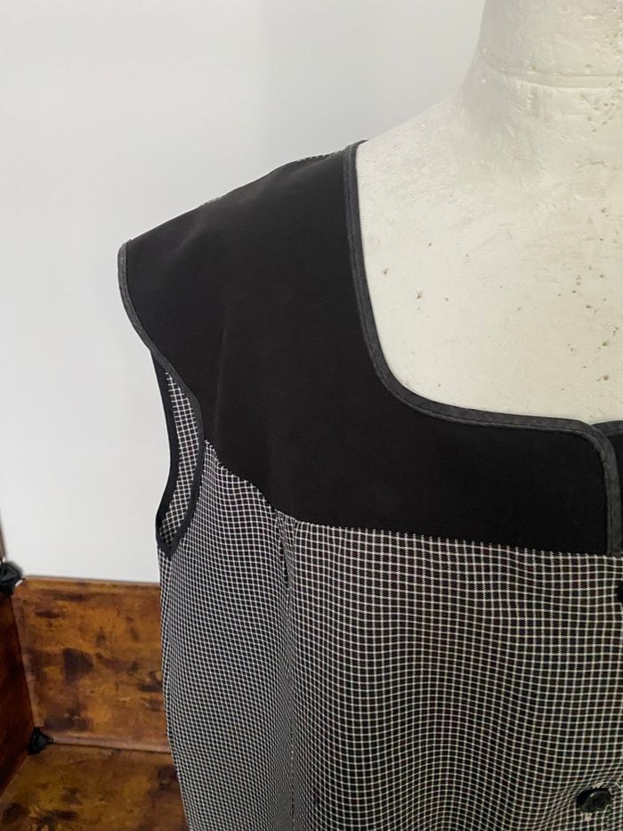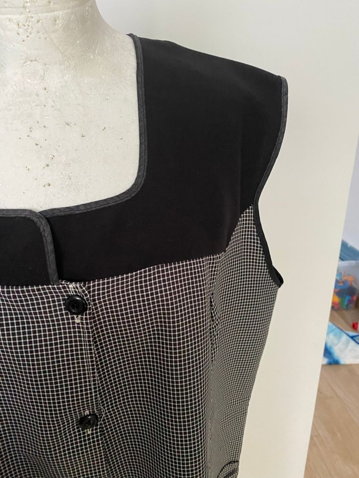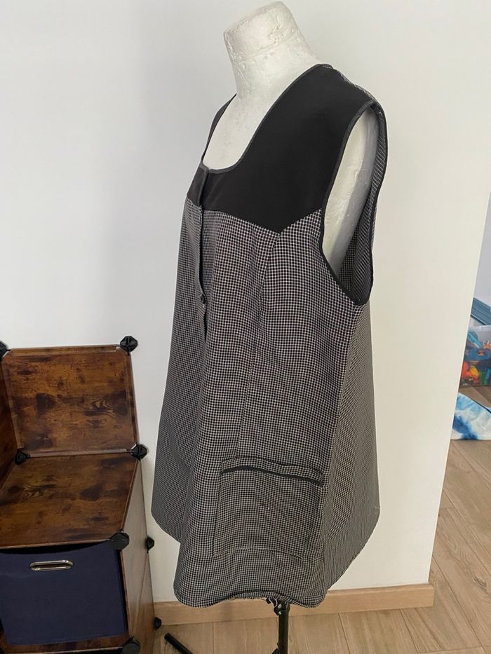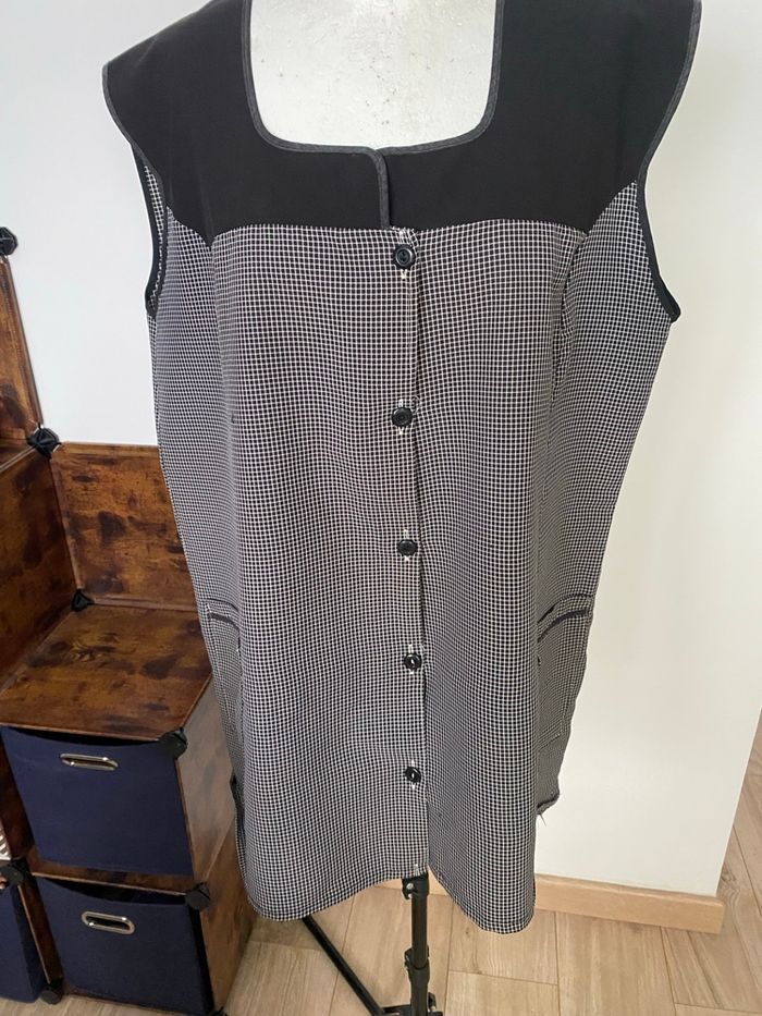 Haut sans manches élégant en noir avec motif pied-de-poule, idéal pour une tenue chic et confortable. Sa coupe fluide et ses détails contrastés apportent une touche moderne et raffinée. 🖤 Détails : • Taille : 50 • Couleur : Noir & motif pied-de-poule • Fermeture : Boutons sur le devant • Poches pratiques • Coupe fluide et agréable à porter ✨ Idéal pour : ✔️ Tenue de bureau ✔️ Look chic au quotidien ✔️ Superposition sur chemisier ou pull 📌 État : Très bon état