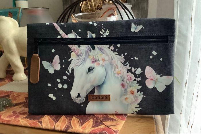 Pochette CABAÏA grise anthracite TBE customisée licorne.
