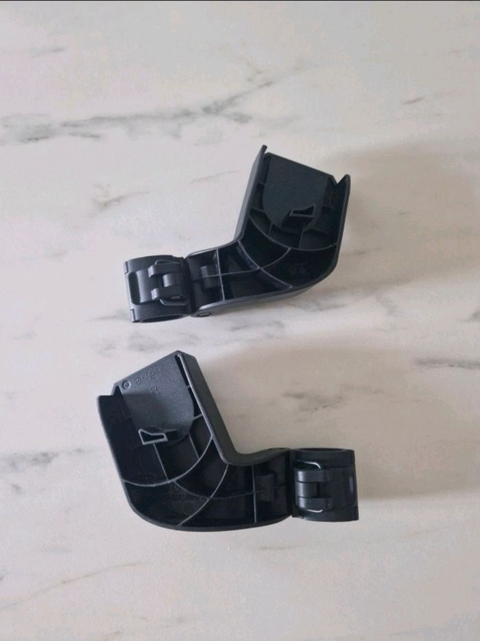 A vendre une paire d'adaptateur ( fixation, modulo clip, attaches rapide, éclipse) permettent de fixer le cosy ( siège auto) sur la structure de la poussette. Marque Cybex Modèle : Coya