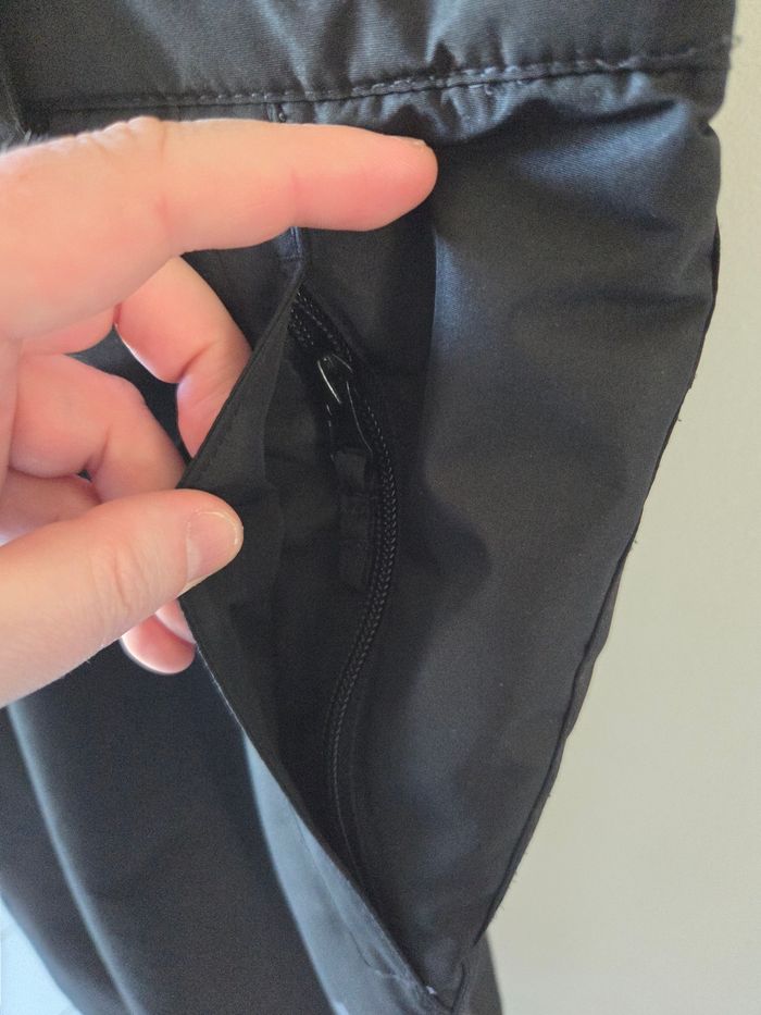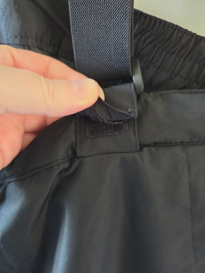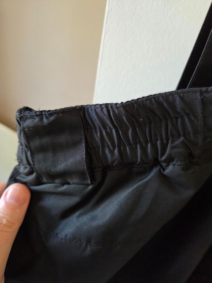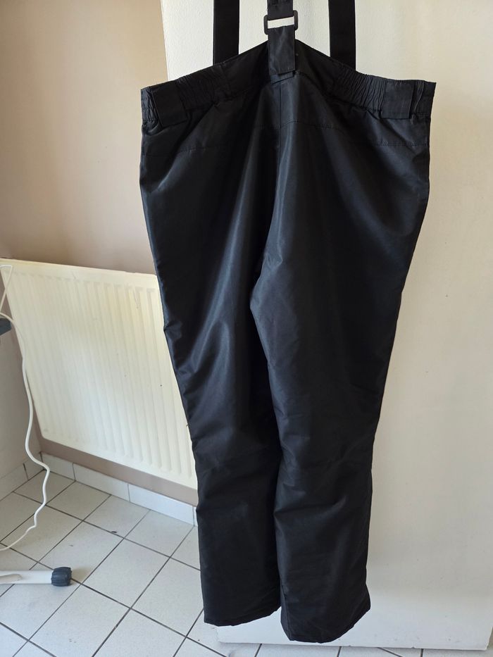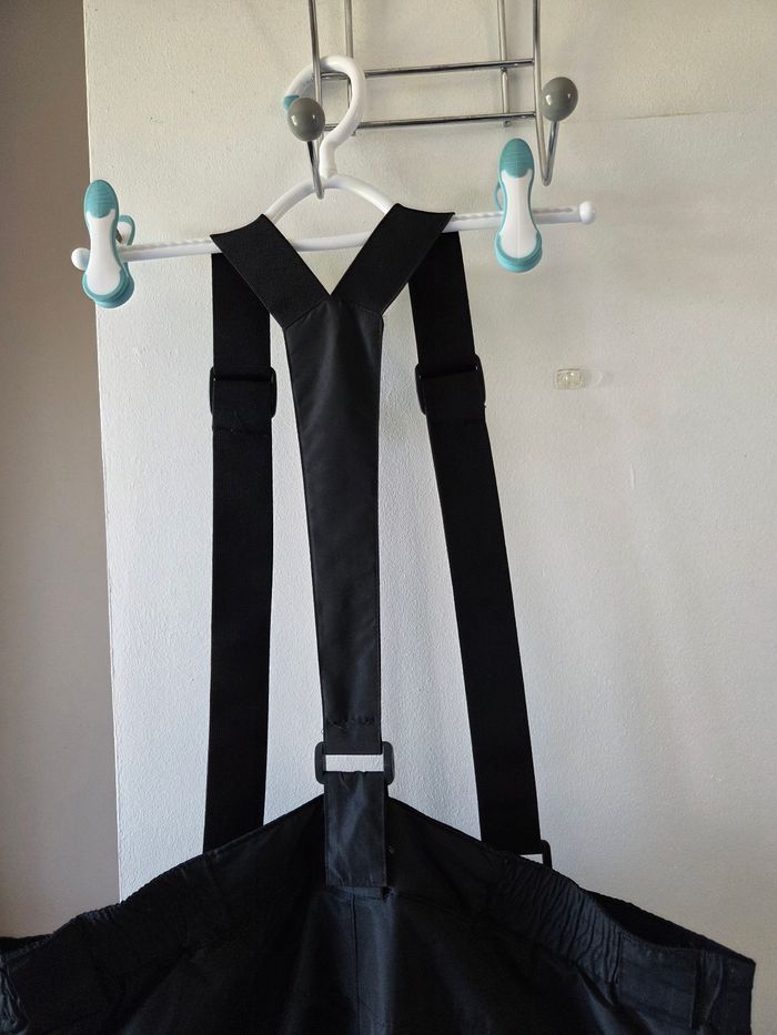 Pantalon de ski noir avec bretelles, taille 46. Avec 2 poches zippées, ceinture élastiquée dans de dos de chaque côté. Les bretelles sont attachées par des scratchs. État impeccable, le pantalon n'a été porté que 6 jours pour la classe de neige de mon fils. Acheté en janvier 2026