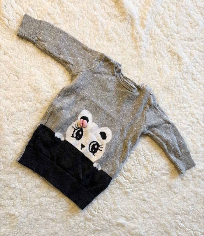 jolie robe pour bébé taille 3 mois. 🌸 Couleur Gris chiné avec de petits points blancs. Motif tête d’animal mignon qui dépasse d'une bande noire sur le bas. Petit nœud rose en relief sur l'oreille de l’animal. Ouverture par deux boutons nacrés et brillants sur l'épaule pour faciliter le passage de la tête. Envoie rapide et soigner 🌸 De nouvelles pièces pour bébés arrivent régulièrement, alors n’hésitez pas à revenir souvent et à vous abonner pour ne rien manquer ! ✨🩷