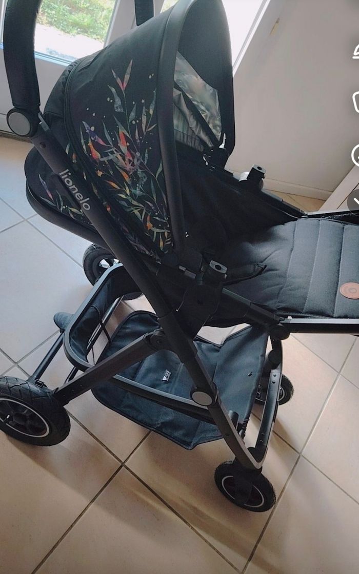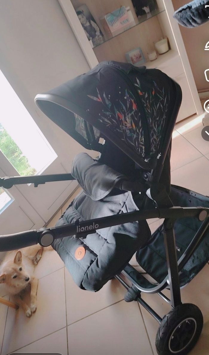 Poussette servie 1 an. Acheté 400e. A tout les vêtements avec . Pluie moustiques et pied pour le froid