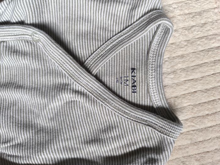 Vend body manche longue rayé, couleur vert kaki Taille 1 mois Très bon état, très peu servi
