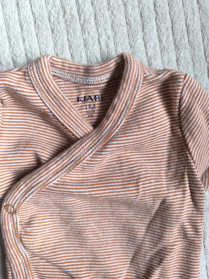 Vend body manche longue rayé, couleur marron Taille 1 mois Très bon état et très peu porté