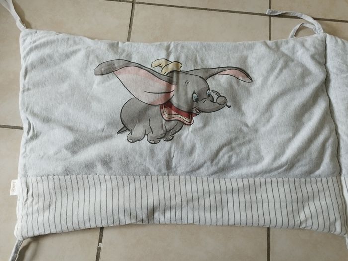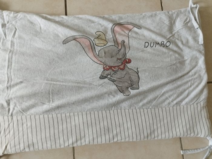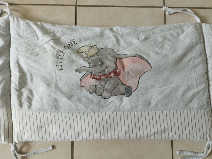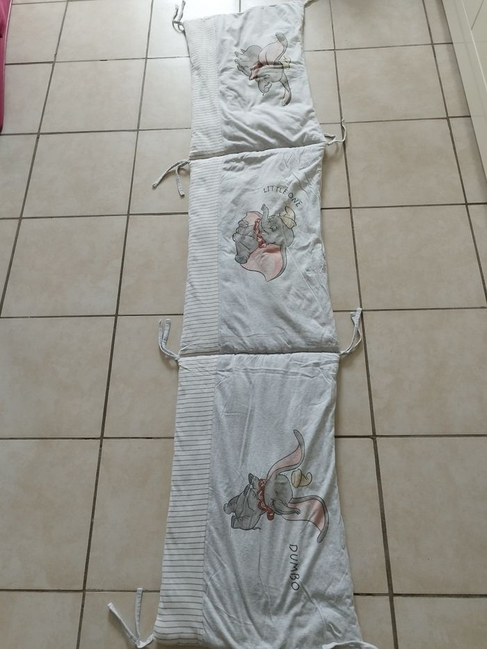 Tour de lit Dumbo longueur 180 cm, largeur 38cm Très bon état juste 2 nouettes qui ont été réparées mais ne gênent en rien l'utilisation.