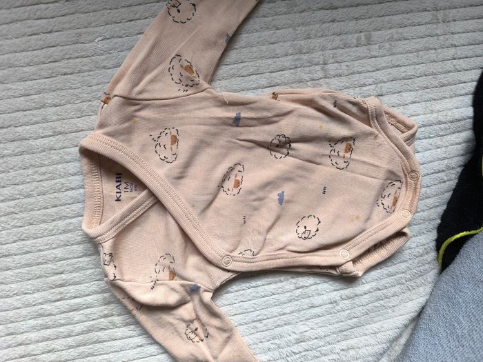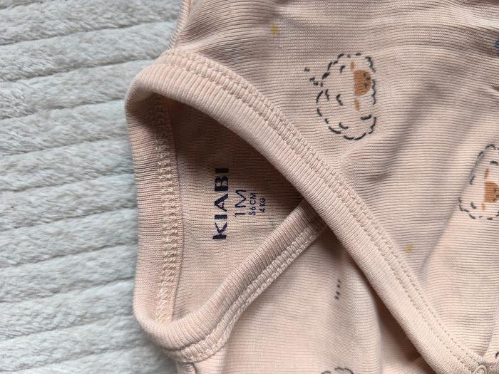 Vend body manche longue, couleur marron clair avec motif Taille 1 mois Très bon état et très peu porté
