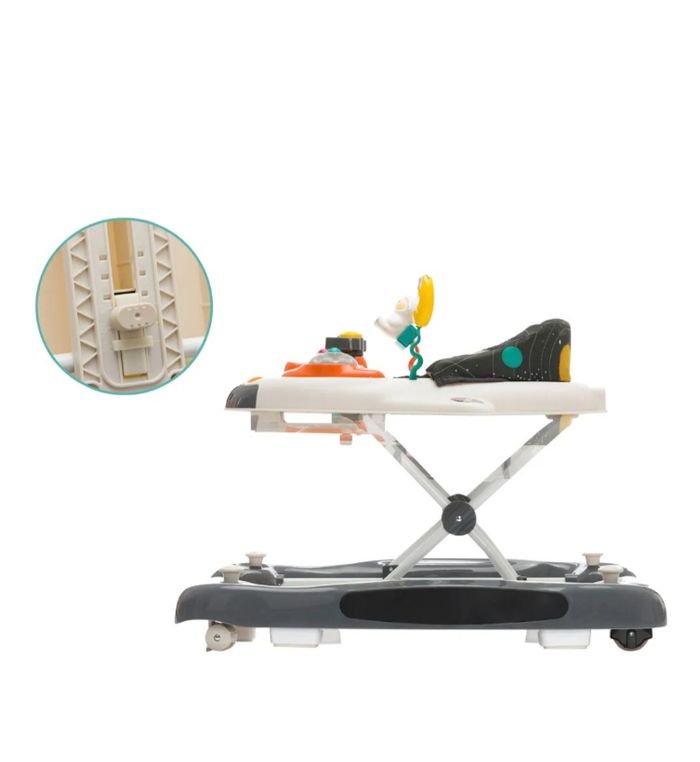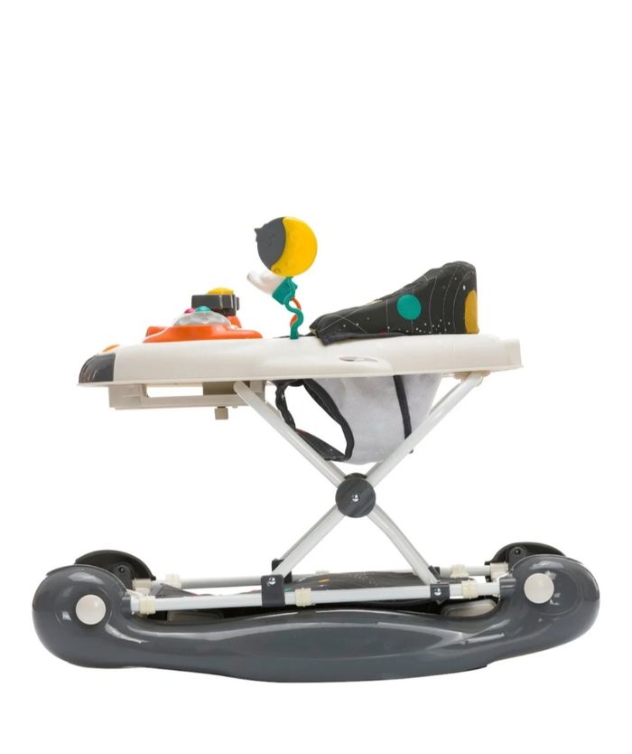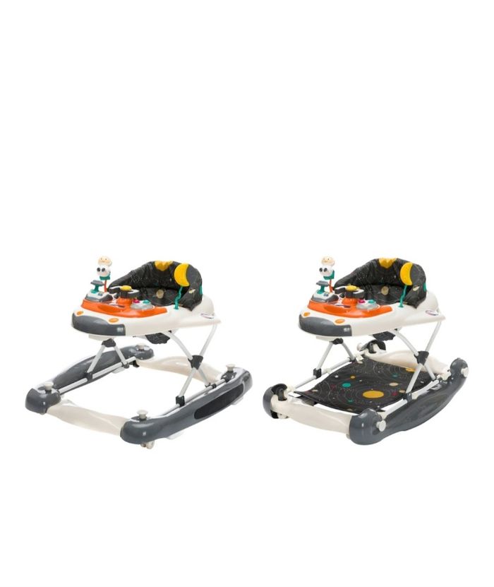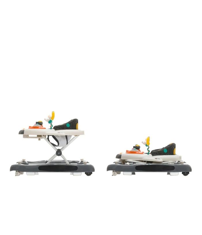 Trotteur space avec fonction bascule Ce trotteur signé fillikid incitera votre enfant à améliorer ses capacités motrices et à apprendre à marcher tout en s’amusant. Trotteur avec fonction bascule Siège-hamac de qualité Réglable en hauteur sur trois positions avec bandes de sécurité, s'adapte parfaitement à l'enfant qui grandit 4 roues en plastique, 8 stoppeurs Tablette de jeu électronique 2 piles AA 1,5V non incluses Ce trotteur signé fillikid est idéal pour stimuler les capacités motrices de votre enfant jusqu’à ce qu’il soit capable de marcher tout seul. Grâce à sa hauteur réglable sur trois niveaux, le trotteur s’adapte idéalement à toutes les phases de croissance de bébé. Votre bout’chou sera confortablement assis dans le siège suspendu, en toute sécurité, tout en bougeant à son aise. Le jouet électronique, quant à lui, amusera votre enfant afin qu'il ne s’ennuie jamais,