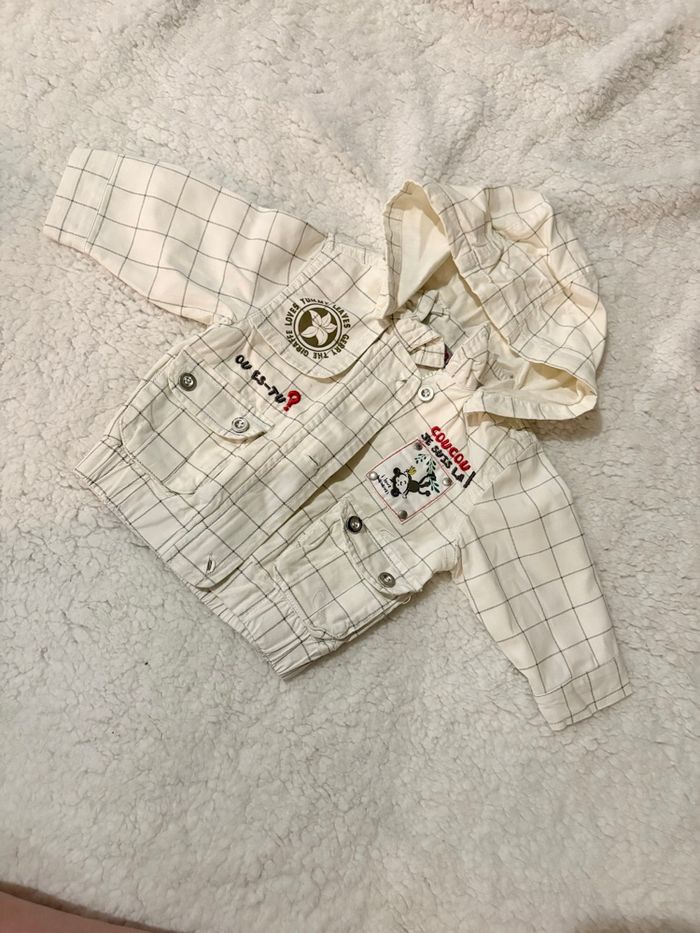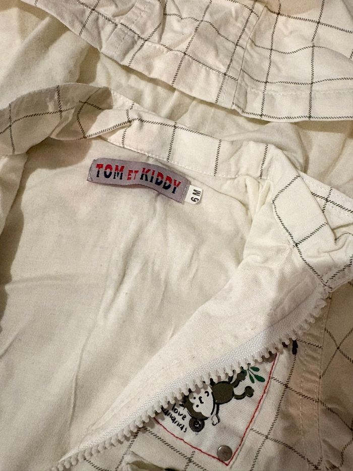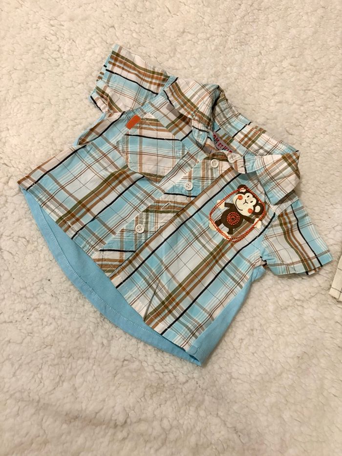 lot de 3 pièces assorties pour petit garçon, parfait pour un look "aventurier" confortable et original. L'ensemble est décoré de petits animaux et de motifs sympas. Le lot comprend : Une chemisette à manches courtes : Motif à carreaux bleu, blanc et marron avec un petit singe brodé sur la poitrine. Un short assorti : Couleur marron avec rappels de carreaux sur les poches et inscription "Best Friends". Taille élastiquée pour plus de confort. Une petite veste légère à capuche : Blanche à fins carreaux Taille 6 mois🧸 Envoie rapide et soigner 🌸 De nouvelles pièces pour bébés arrivent régulièrement, alors n’hésitez pas à revenir souvent et à vous abonner pour ne rien manquer ! ✨🩷